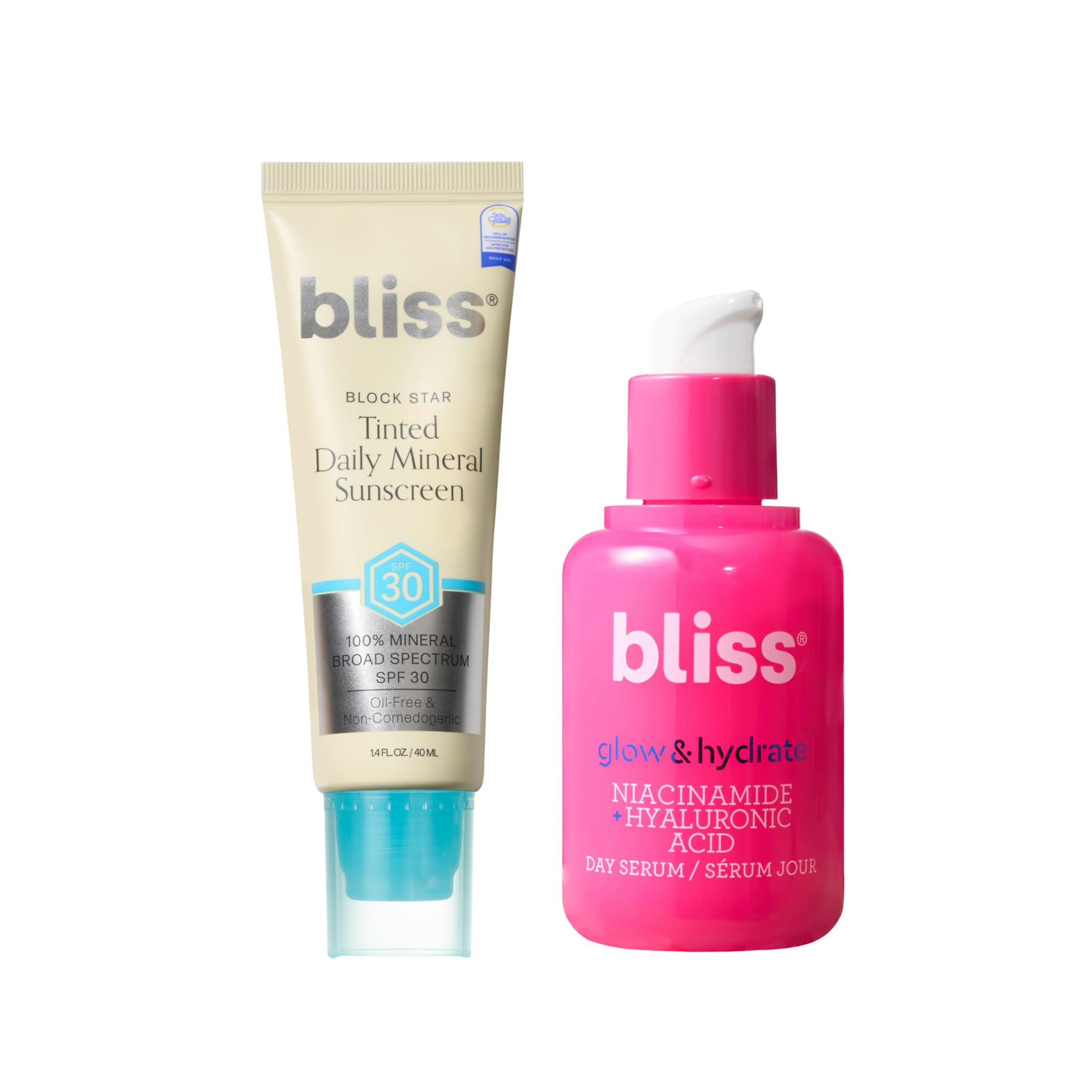 Bliss Block Star SPF 30 Invisible Daily Tinted Sunscreen with Zinc Oxide Sunscreen & Makeup Primer + Glow & Hydrate Serum - Niacinamide + Hyaluronic Acid Serum
