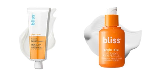 HOW TO APPLY: Massage the Bright Idea Serum onto clean, dry skin morning and night. Follow with the Glow Rush Moisturizer for maximum luminosity. ALL-DAY RADIANCE Ditch the concealer and brighten your skin from within. Go from dull to dazzling without an ounce of makeup: simply allow your skin to soak up this moisturizer and serum combo and discover transforming results!. CLINICAL-GRADE VITAMIN C VITAMIN E: These beneficial ingredients will have you bound for blissful skin. Both products are formulated with vitamin C to visibly illuminate. The moisturizer is also enriched with hydrating squalene, antioxidant-rich vitamin E and soothing shea butter while the serum includes collagen-boosting tripeptides and antioxidant-rich green tea extract. BOOSTS BRIGHTNESS AND ELASTICITY:This incredible combo revives lifeless skin and effectively reduces the appearance of dark spots to promote radiance. The moisturizer nourishes while the serum increases collagen to improve elasticity, protecting your youthful complexion. VITAMIN C AND PEPTIDE SERUM LUMINOUS DAILY MOISTURIZER: Brighten up your skincare routine with Bliss' Glow Rush Moisturizer and Bright Idea Serum. These skin-loving products are both infused with vitamin C to help you achieve a supremely luminous complexion. Enhance your inner light with this hydrating duo!.