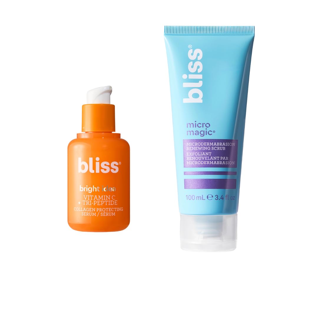 Bliss Glow Boost Skincare Duo Micro Magic Skin-Refining Exfoliator (Packaging May Vary) & Bright Idea Vitamin C Serum Face Scrub & Brightening Serum for Smooth Radiant Even-Toned Skin