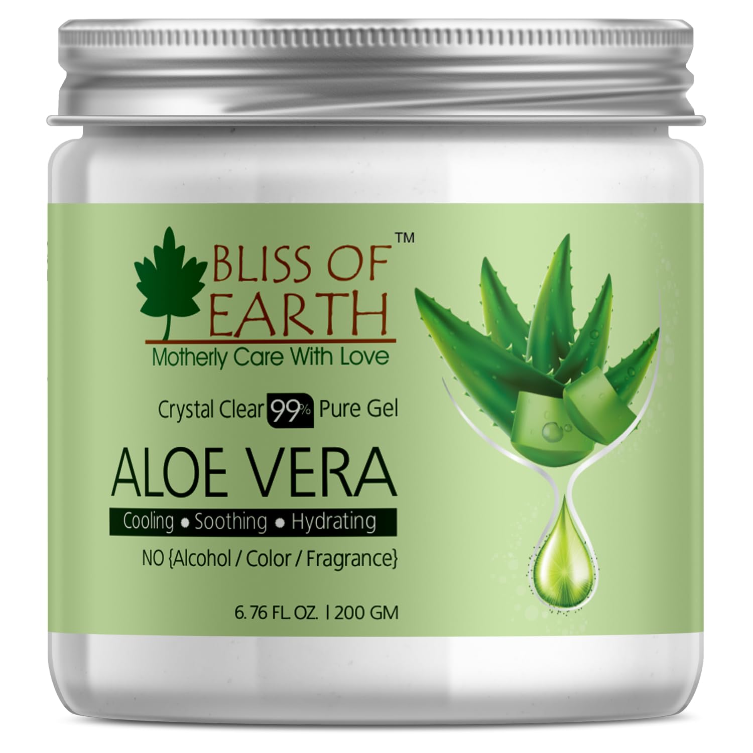 BLISS OF EARTH Aloe Vera Gel Pure Crystal Clear Best For Face Body Hair Effective Cooling Soothing Hydrating Colour And Fragrance Free Alcohol And Paraben Free 200gm