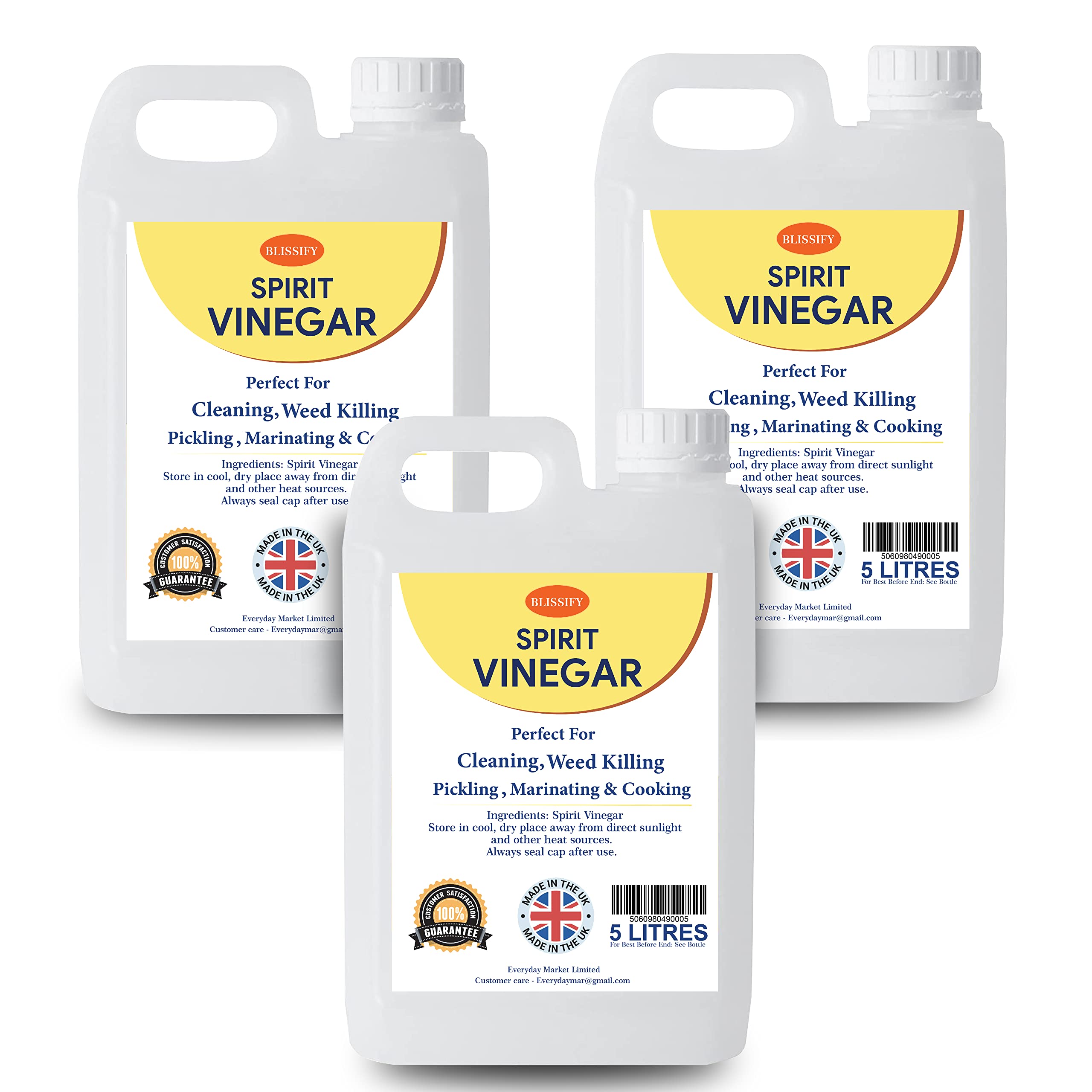 Blissify Spirit White Vinegar Food Grade Acetic Acid Liquid for Household Cleaning Cooking Baking and Pickling (5L Pack of 3)