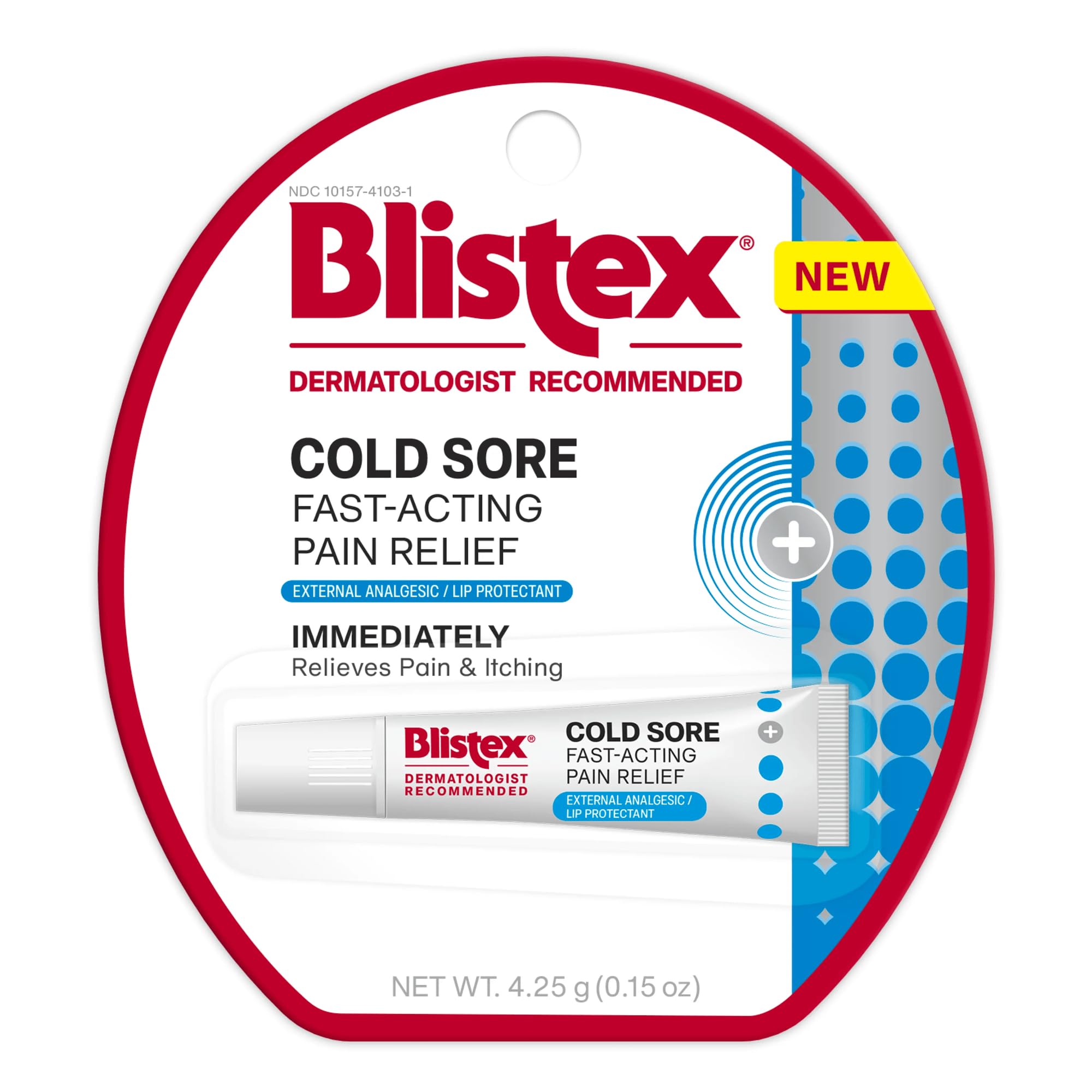 HSA and FSA eligible item. Cold Sore Product: One 4.25g (0.15oz) tube of Blistex Cold Sore Fast-Acting Pain Relief. Hydrating Barrier: Formulated with Glycerin to create a long-lasting barrier to help prevent dryness and cracking, keeping lips comfortable throughout the day. Soothing: Helps calm irritation to reduce discomfort of cold sore symptoms. Acts Fast: Contains maximum-strength Lidocaine solution to block nerve signals to deliver rapid pain relief.