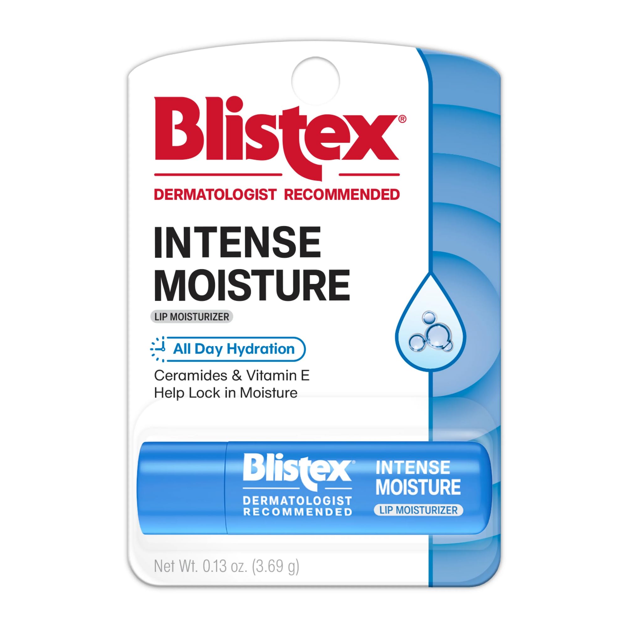 Blistex Intense Moisture - All Day Hydration Lip Balm & Moisturizer for Dry Lips - Ceramides to Lock in Moisture Vitamin E Smooths 1 Count 0.13oz (3.69 g)