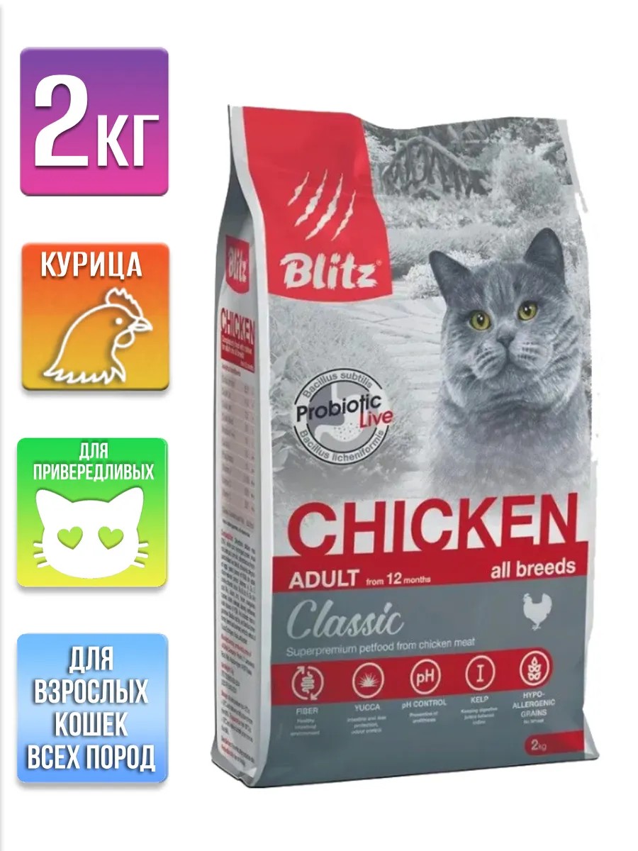Blitz Classic Chicken Adult Cats Блитц с курицей сухой корм для взрослых кошек 2 кг.