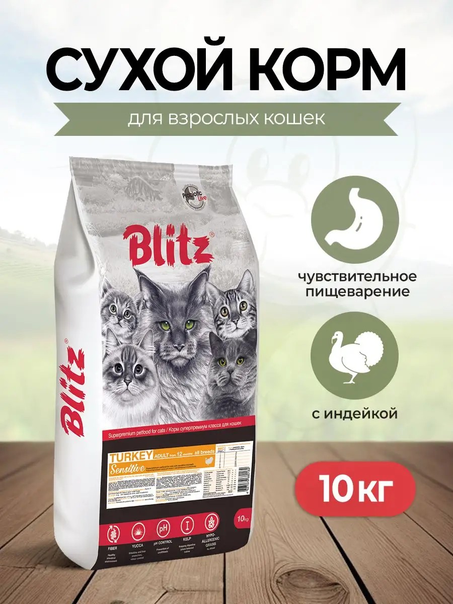 BLITZ Сухой корм для кошек с индейкой - 10 кг