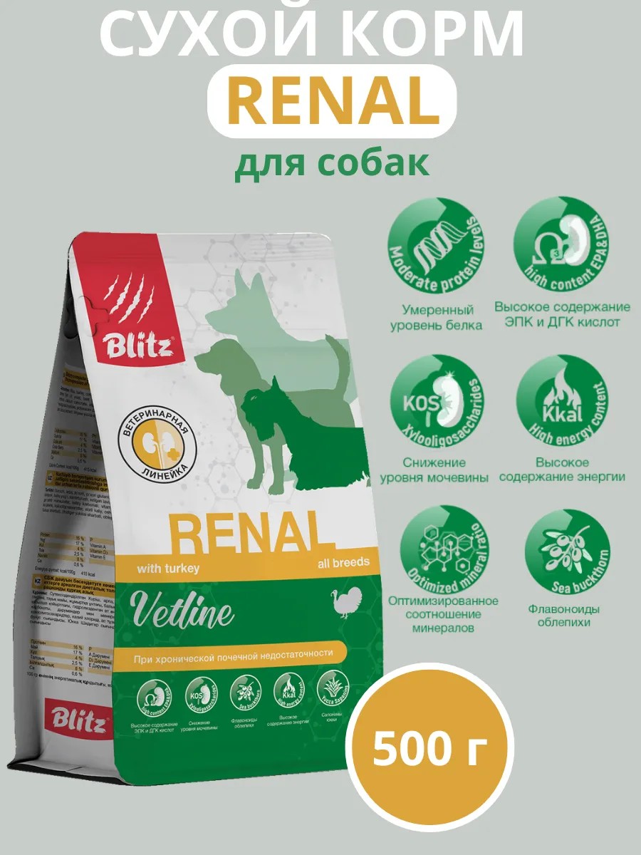 BLITZ Сухой корм для собак при почечной недостаточности, 500 г