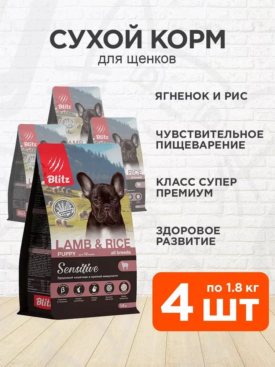 Blitz Корм сухой Sensitive Puppy для щенков ягненок 1,8 кг 4 шт