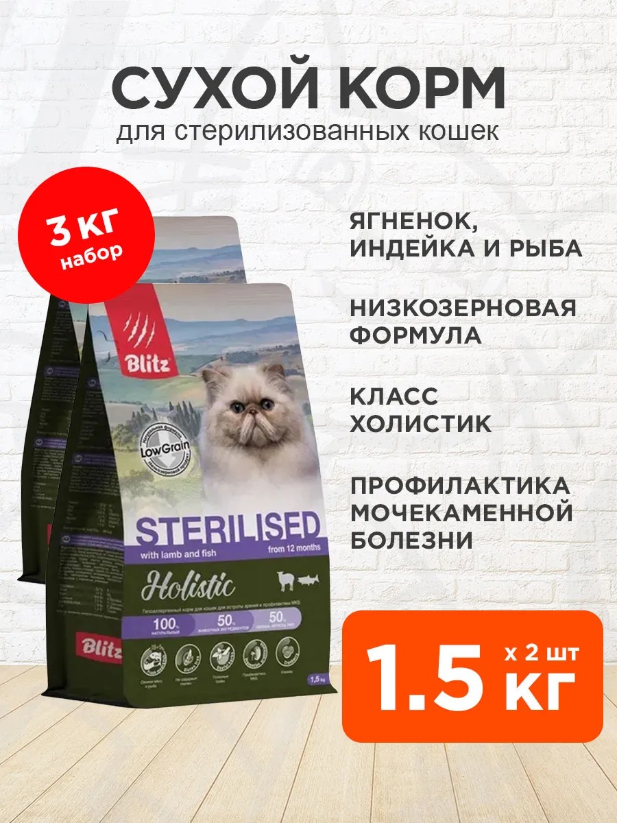 BLITZ Корм сухой Holistic стерилизованных кошек ягненок 1,5 кг 2шт