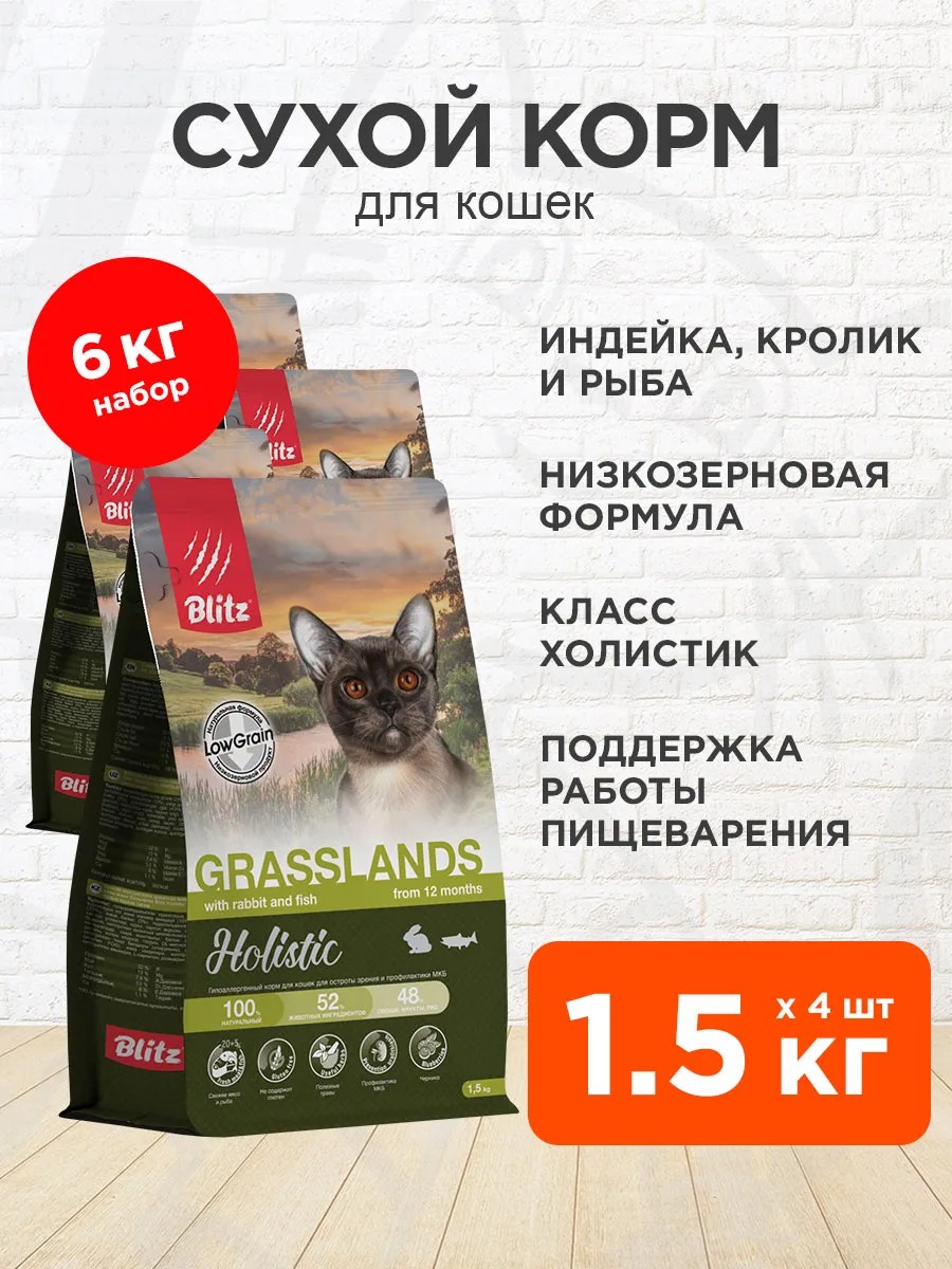 BLITZ Корм сухой Holistic Grasslands для кошек индейка 1,5 кг 4 шт