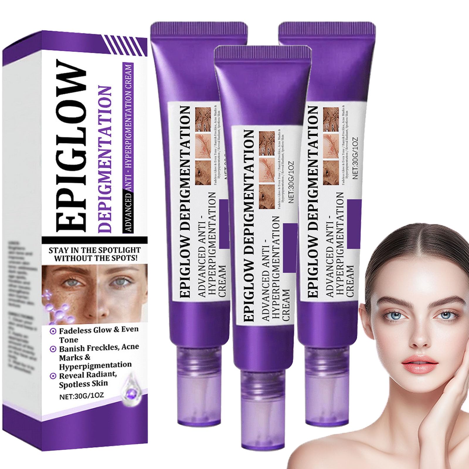 Anti-aging facial cream, anti-melasma facial cream, anti-dark spot face and body cream, advanced anti-hyperpigmentation cream, Epiglow Melanex cream for hyperpigmentation treatment, visibly reduces and prevents wrinkles, skin tone corrector, visibly lightens dark spots, anti-dark spot and anti-aging facial treatment, deep cleansing, anti-dark spot and facial corrector, anti-freckles and hyperpigmentation. Specifications: Name: Advanced Anti-Hyperpigmentation Cream Net Contents: 30g Package Contents: 1 2 3 4 6 pieces Advanced Anti-Hyperpigmentation Cream Note: 1. Please allow slight variations in size due to manual measurement. Thank you for your understanding. 2. Monitors are not calibrated the same way therefore, the color of the item shown in the photos may be slightly different from the actual product. Please refer to the actual photo. 3. Please contact us at any time if you have any questions we will provide the most satisfactory solution within 24 hours. SAFETY WARNING Store in a cool, dry place away from sunlight. Keep out of reach of children.Directions for use – Cleanse your skin and keep it dry. Apply an appropriate amount of cream evenly to the face and body. Wait until it is absorbed. Suitable for all skin types – This hyperpigmentation treatment face cream contains gentle ingredients and is suitable for dry, oily, combination, and sensitive skin. Intense hydration – Our dark spot cream locks in moisture to deeply hydrate and nourish the skin, improving its texture and reducing dryness, leaving it moisturized and soft. Wrinkle reduction – This hyperpigmentation cream effectively reduces the appearance of fine lines, wrinkles, and sagging skin, leaving skin firmer and smoother. Lightens spots – Our dark spot cream visibly reduces hyperpigmentation, melasma, freckles, and age spots, brightens dull skin, and evens out skin tone.Crème anti-hyperpigmentation avancée Epiglow Melanex, crème anti-âge pour le visage, anti-taches brunes, éclaircissante à la niacinamide, hydratante correctrice de teint, réduit les rides (3)DESCRIPTION DU PRODUIT DESCRIPTION DU PRODUIT Description du produit Crème anti-âge pour le visage, crème anti-mélasma pour le visage, anti-taches brunes pour le visage et le corps, crème anti-hyperpigmentation avancée, crème Epiglow Melanex pour le traitement de l'hyperpigmentation, réduit et prévient visiblement les rides, correcteur de teint, éclaircit visiblement les taches brunes, traitement anti-taches brunes et anti-âge pour le visage, nettoyant en profondeur, anti-taches brunes et correcteur pour le visage, anti-taches de rousseur et hyperpigmentation. Spécifications : Nom : Crème anti-hyperpigmentation avancée Contenu net : 30 g Contenu de l'emballage : 1 2 3 4 6 pièces Crème anti-hyperpigmentation avancée Remarque : 1. Les mesures étant prises à la main, de légères variations de taille sont possibles. Merci de votre compréhension. 2. Les écrans ne sont pas calibrés de la même manière la couleur de l'article affichée sur les photos peut donc être légèrement différente de la réalité. Veuillez prendre la photo réelle comme référence. 3. Veuillez nous contacter à tout moment si vous avez des questions, nous vous donnerons la solution la plus satisfaisante dans les 24 heures. AVERTISSEMENT DE SÉCURITÉ Conserver dans un endroit frais et sec, à l'abri du soleil. Tenir hors de portée des enfants.Mode d'emploi – Nettoyez votre peau et maintenez-la sèche. Appliquez une quantité appropriée de crème uniformément sur le visage et le corps. Attendez qu'elle soit absorbée. Convient à tous les types de peau – Cette crème visage traitante contre l'hyperpigmentation contient des ingrédients doux et convient aux peaux sèches, grasses, mixtes et sensibles. Hydratation intense – Notre crème anti-taches brunes retient l'humidité pour hydrater et nourrir la peau en profondeur, améliorant ainsi sa texture et sa sécheresse, la laissant hydratée et douce. Réduction des rides – Cette crème anti-hyperpigmentation réduit efficacement l'apparence des ridules, des rides et du relâchement cutané, laissant la peau plus ferme et plus lisse. Éclaircit les taches – Notre crème anti-taches brunes réduit visiblement l'hyperpigmentation, le mélasma, les taches de rousseur et les taches de vieillesse, illumine le teint terne et unifie le teint.