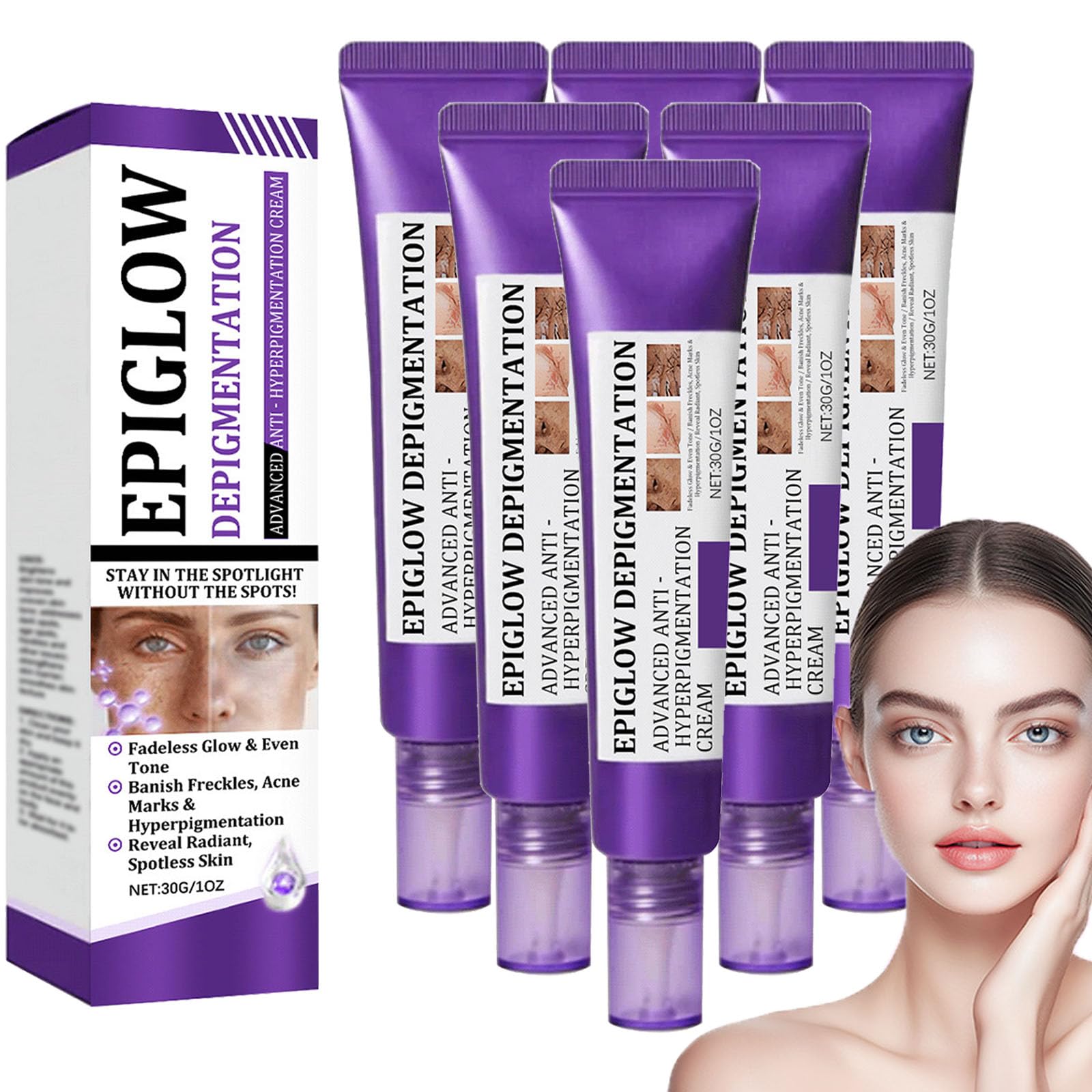 Anti-aging facial cream, anti-melasma facial cream, anti-dark spot face and body cream, advanced anti-hyperpigmentation cream, Epiglow Melanex cream for hyperpigmentation treatment, visibly reduces and prevents wrinkles, skin tone corrector, visibly lightens dark spots, anti-dark spot and anti-aging facial treatment, deep cleansing, anti-dark spot and facial corrector, anti-freckles and hyperpigmentation. Specifications: Name: Advanced Anti-Hyperpigmentation Cream Net Contents: 30g Package Contents: 1 2 3 4 6 pieces Advanced Anti-Hyperpigmentation Cream Note: 1. Please allow slight variations in size due to manual measurement. Thank you for your understanding. 2. Monitors are not calibrated the same way therefore, the color of the item shown in the photos may be slightly different from the actual product. Please refer to the actual photo. 3. Please contact us at any time if you have any questions we will provide the most satisfactory solution within 24 hours. SAFETY WARNING Store in a cool, dry place away from sunlight. Keep out of reach of children.Directions for use – Cleanse your skin and keep it dry. Apply an appropriate amount of cream evenly to the face and body. Wait until it is absorbed. Suitable for all skin types – This hyperpigmentation treatment face cream contains gentle ingredients and is suitable for dry, oily, combination, and sensitive skin. Intense hydration – Our dark spot cream locks in moisture to deeply hydrate and nourish the skin, improving its texture and reducing dryness, leaving it moisturized and soft. Wrinkle reduction – This hyperpigmentation cream effectively reduces the appearance of fine lines, wrinkles, and sagging skin, leaving skin firmer and smoother. Lightens spots – Our dark spot cream visibly reduces hyperpigmentation, melasma, freckles, and age spots, brightens dull skin, and evens out skin tone.Crème anti-hyperpigmentation avancée Epiglow Melanex, crème anti-âge pour le visage, anti-taches brunes, éclaircissante à la niacinamide, hydratante correctrice de teint, réduit les rides (6)DESCRIPTION DU PRODUIT DESCRIPTION DU PRODUIT Description du produit Crème anti-âge pour le visage, crème anti-mélasma pour le visage, anti-taches brunes pour le visage et le corps, crème anti-hyperpigmentation avancée, crème Epiglow Melanex pour le traitement de l'hyperpigmentation, réduit et prévient visiblement les rides, correcteur de teint, éclaircit visiblement les taches brunes, traitement anti-taches brunes et anti-âge pour le visage, nettoyant en profondeur, anti-taches brunes et correcteur pour le visage, anti-taches de rousseur et hyperpigmentation. Spécifications : Nom : Crème anti-hyperpigmentation avancée Contenu net : 30 g Contenu de l'emballage : 1 2 3 4 6 pièces Crème anti-hyperpigmentation avancée Remarque : 1. Les mesures étant prises à la main, de légères variations de taille sont possibles. Merci de votre compréhension. 2. Les écrans ne sont pas calibrés de la même manière la couleur de l'article affichée sur les photos peut donc être légèrement différente de la réalité. Veuillez prendre la photo réelle comme référence. 3. Veuillez nous contacter à tout moment si vous avez des questions, nous vous donnerons la solution la plus satisfaisante dans les 24 heures. AVERTISSEMENT DE SÉCURITÉ Conserver dans un endroit frais et sec, à l'abri du soleil. Tenir hors de portée des enfants.Mode d'emploi – Nettoyez votre peau et maintenez-la sèche. Appliquez une quantité appropriée de crème uniformément sur le visage et le corps. Attendez qu'elle soit absorbée. Convient à tous les types de peau – Cette crème visage traitante contre l'hyperpigmentation contient des ingrédients doux et convient aux peaux sèches, grasses, mixtes et sensibles. Hydratation intense – Notre crème anti-taches brunes retient l'humidité pour hydrater et nourrir la peau en profondeur, améliorant ainsi sa texture et sa sécheresse, la laissant hydratée et douce. Réduction des rides – Cette crème anti-hyperpigmentation réduit efficacement l'apparence des ridules, des rides et du relâchement cutané, laissant la peau plus ferme et plus lisse. Éclaircit les taches – Notre crème anti-taches brunes réduit visiblement l'hyperpigmentation, le mélasma, les taches de rousseur et les taches de vieillesse, illumine le teint terne et unifie le teint.