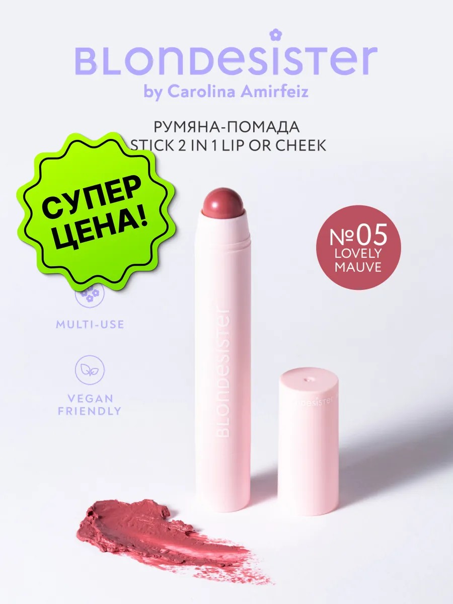 Давай знакомиться! Румяна - помада BLONDESISTER 2 в 1 LIP OR CHEEK тон 05 lovely mauve лилово-розовый оттенок подходит той, что предпочитает холодные цвета. Это универсальный и стильный выбор.