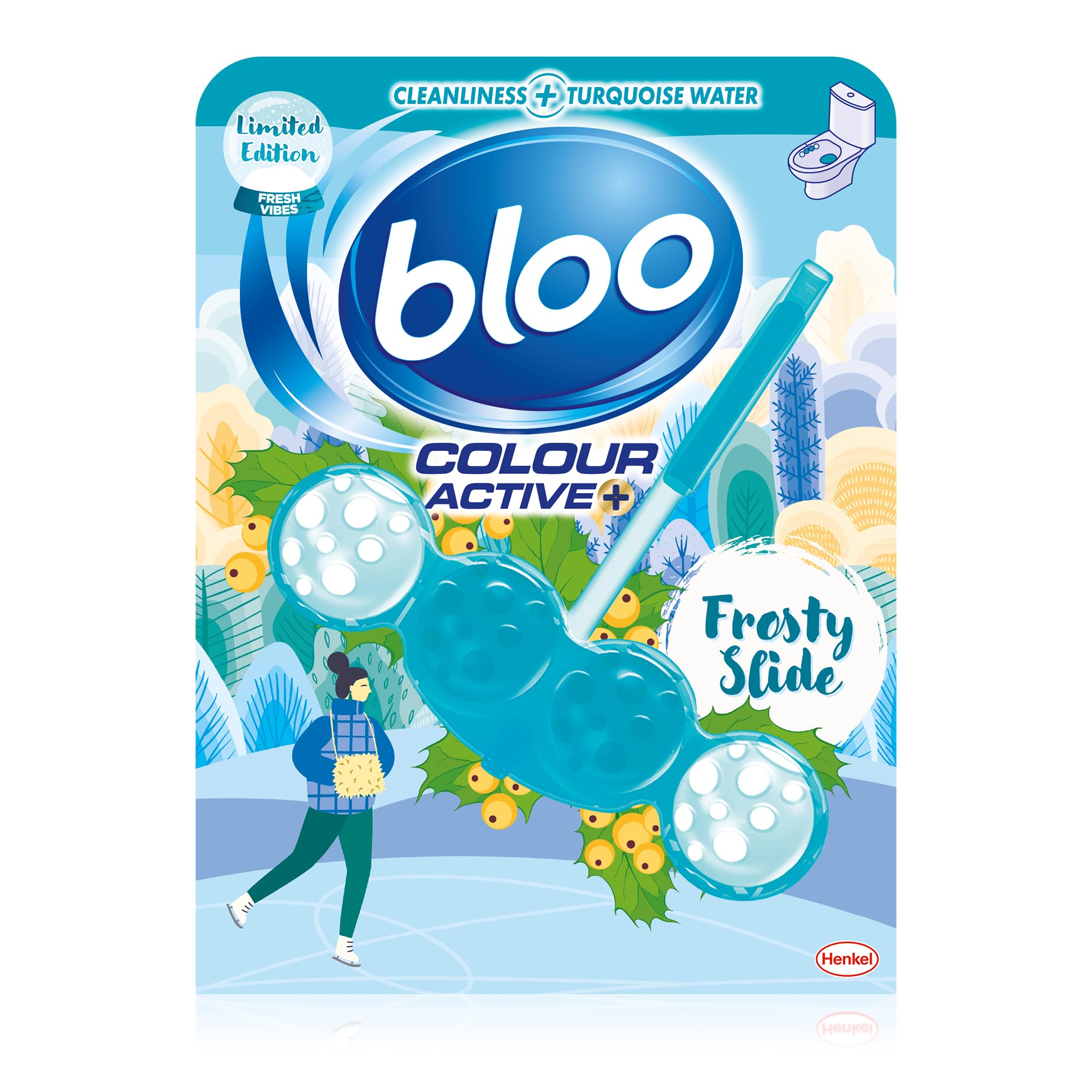 Bloo Limited Edition Frosty Slide Turquoise Coloured Water with Anti-Limescale Cleaning Foam Dirt Protection and Extra Freshness 1 x Toilet Block
