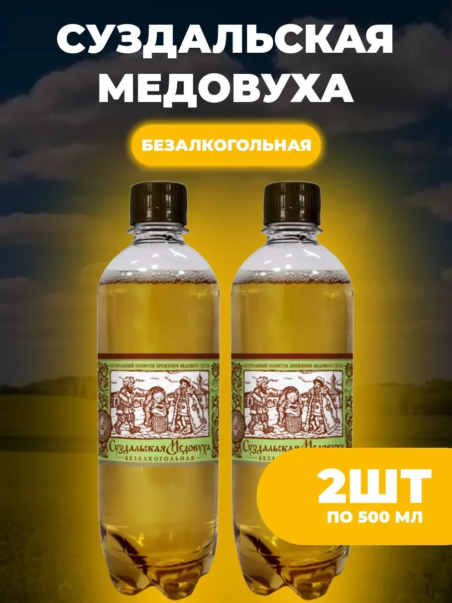 Напитки из России. Напиток медовый безалкогольный фильтрованный пастеризованный 'Суздальская медовуха 'Безалкогольная'. Является естественным природным биоэнергетиком, источником микроэлементов и витаминов. Натуральный напиток брожения медового сусла. Состав: вода подготовленная, мед натуральный цветочный, сахар, регулятор кислотности кислота молочная. Изготовлено с использованием сухих хлебопекарных дрожжей. Пищевая ценность: углеводы - 12,0 г/100мл напитка. Энергетическая ценность: 50 ккал/100 мл напитка, 220 кДж/100 мл напитка. Содержание спирта не более 0,5% об. Хранить при температуре 0-20С. Беречь от воздействия солнечных лучей. Перед употреблением рекомендуется охладить. Допускается опалесценция, обусловленная особенностями используемого натурального сырья. Рекомендуется употребить напиток сразу после вскрытия упаковки. Срок годности: 180 суток. Данная продукция не является лекарственным средством. Замечательный новогодний подарок для себя и близких!