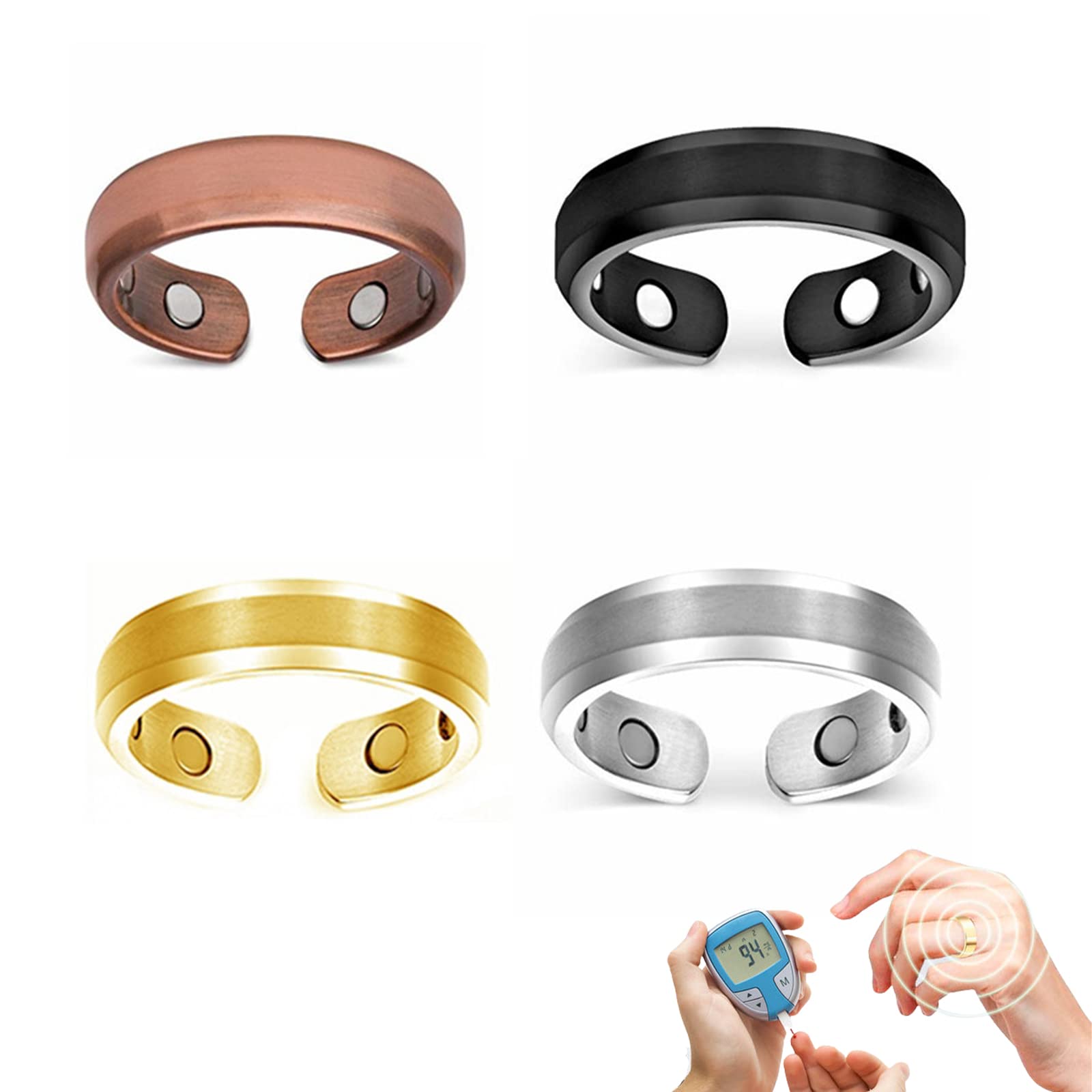 Blood sugar ring control contains four powerful neodymium magnets (3,500 gauss each) that contact the finger for maximum relief. Magnet therapy ring targets pain and inflammation in the fingers, knuckles, joints, hand, and wrist. Promote circulation, balance, sleep and optimize positive energy!