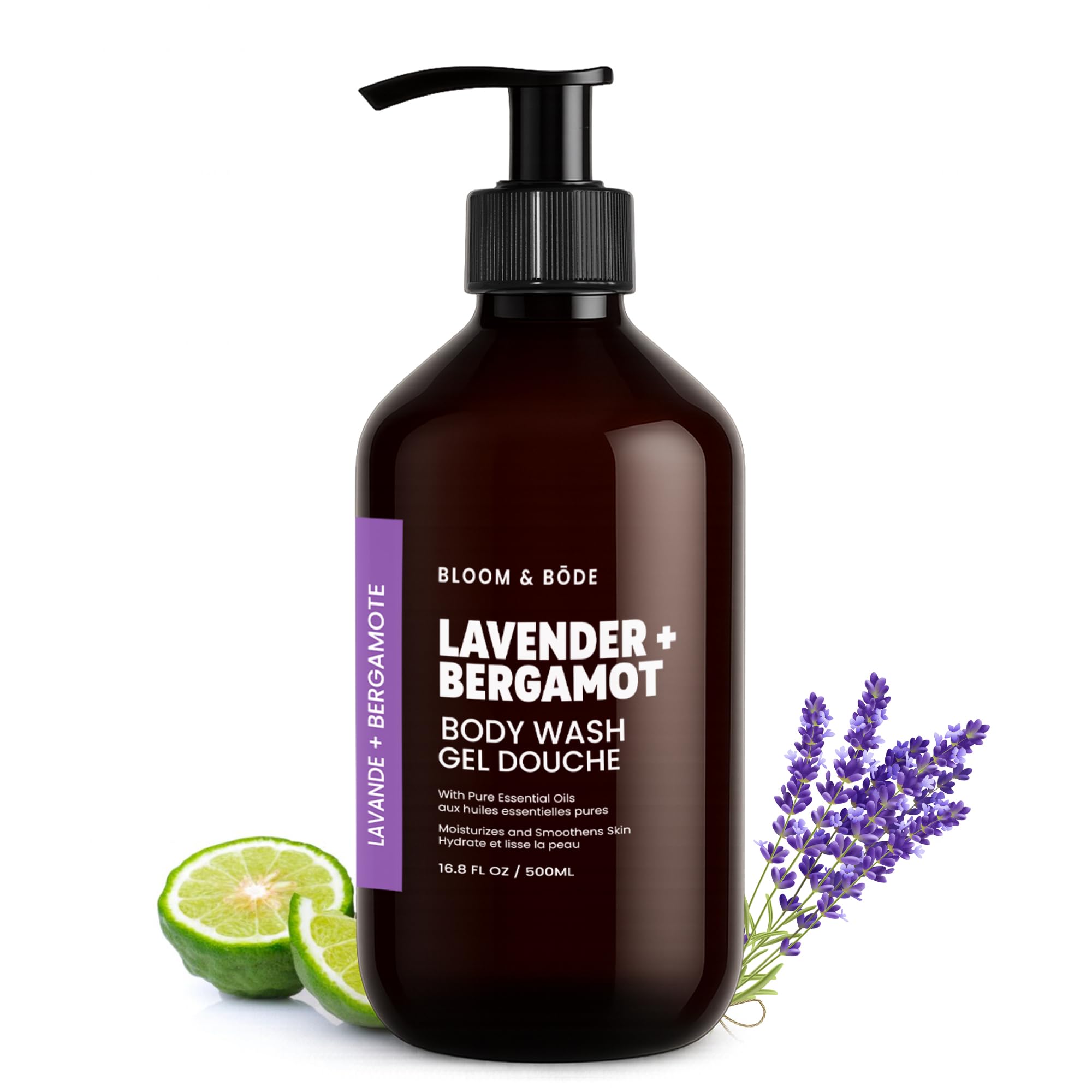 Bloom & B de Lavender + Bergamot Body Wash Gel With Pure Essential Oils Aloe & Glycerin Sulfate-Free Plant-Based & Calming Gentle Daily Cleanse No Dyes/No Artificial Scents 16.9 fl oz