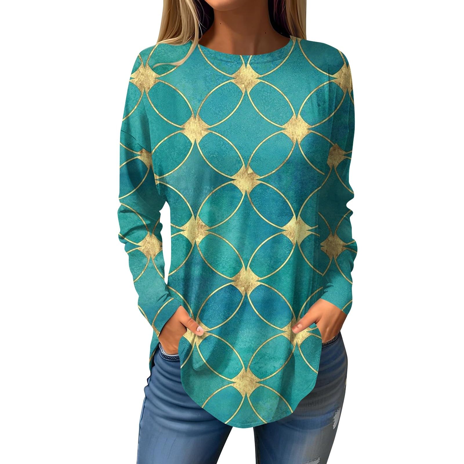 Bluse Damen Lose Lang Rundkragen T Shirt Langarm Oberteil Tunika Casual Sweaters Büroblusen Lässige Oberteile Damenbluse Bluse Pullover Elegante Sweatshirt Grün M