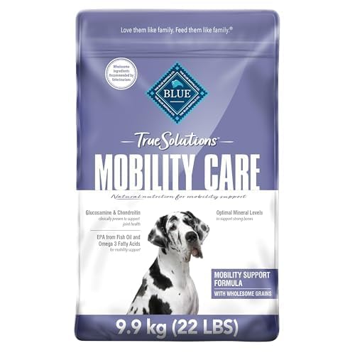 Does your dog have trouble getting around Help support his hip and joint health naturally with the proven ingredients of BLUE True Solutions Mobility Care dry dog food, formulated by our veterinarians and animal nutritionists. Featuring real chicken, healthy whole grains and the finest natural ingredients enhanced with vitamins, minerals and other nutrients, this recipe contains glucosamine and chondroitin, clinically proven to support hip and joint health, plus fish oil to support mobility.