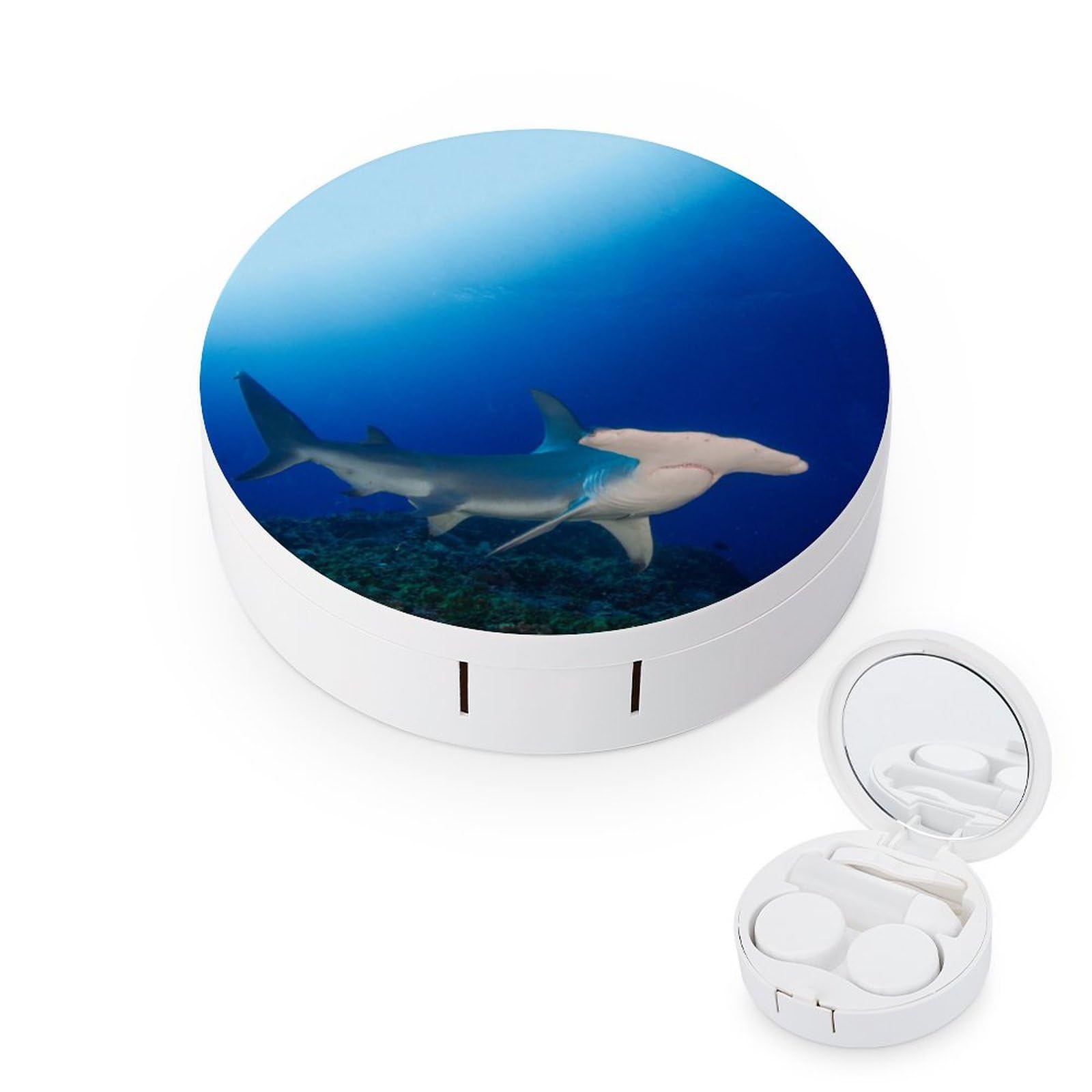Blue Hammerhead Shark Contact Lens Case Travel Portable Travel Contact Lens Box with Mirror