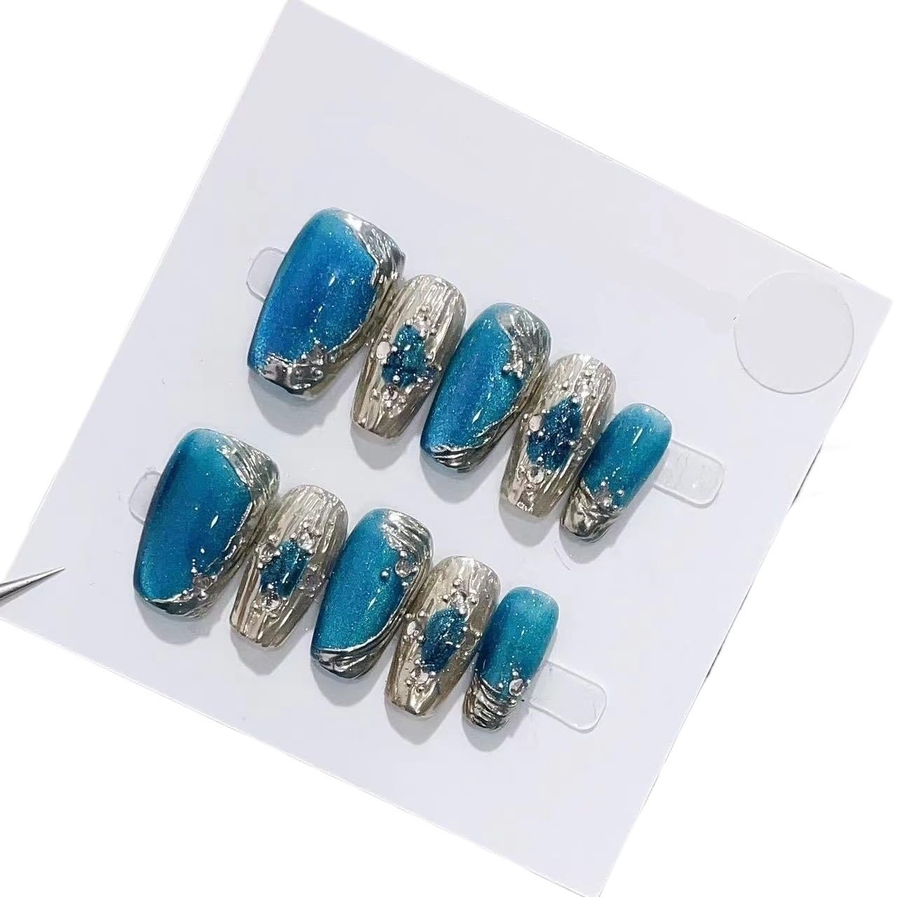 Blue handmade cat eye nail enhancement, detachable and wearable nails.