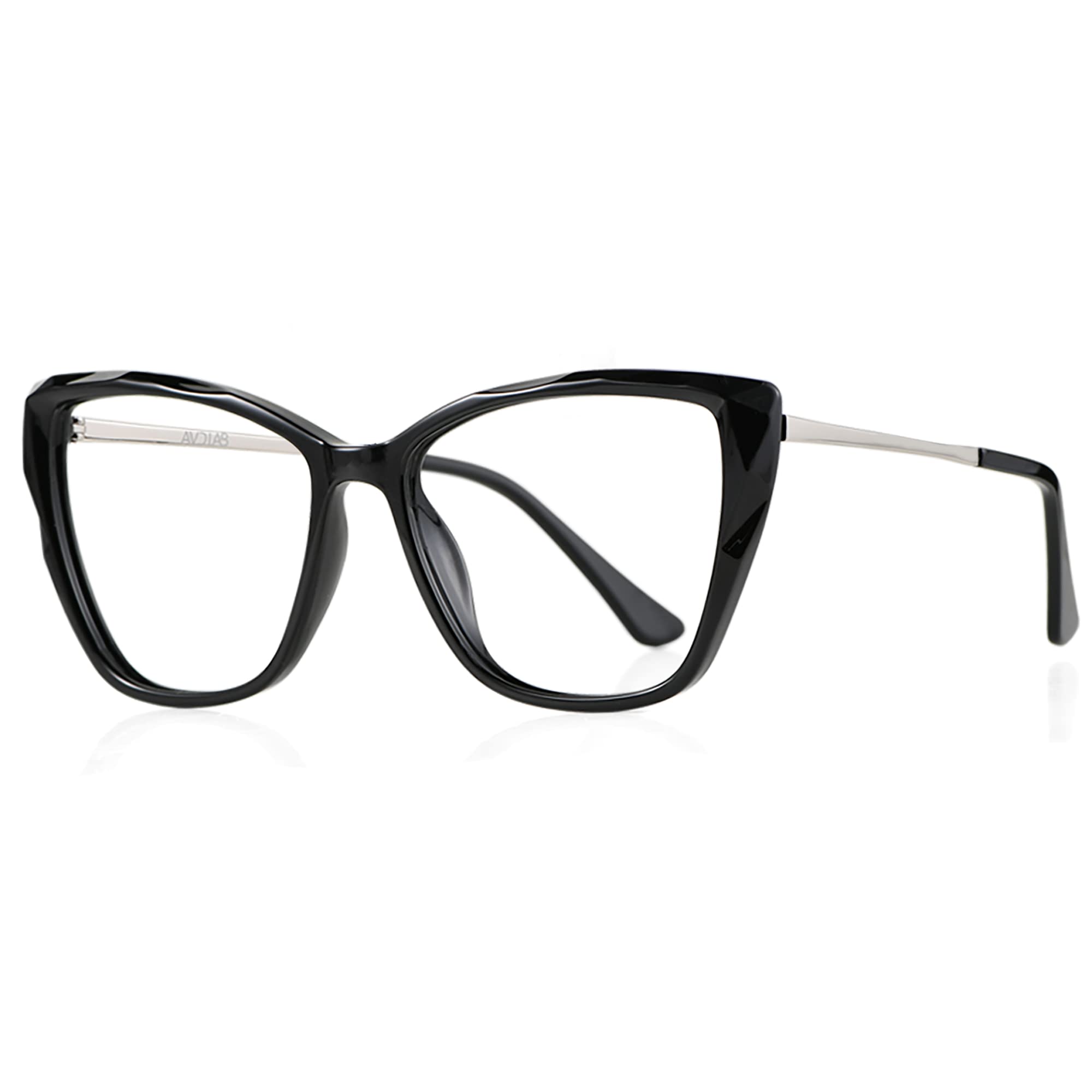 Blue Light Blocking Glasses Vintage Oversized Cat Eye Glasses for Women & Men Anti Eyestrain & UV Protection AB3304 Bright Black