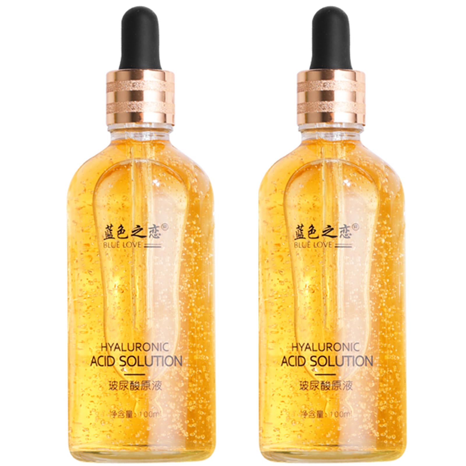 BLUE LOVE 2PC 24K Gold Foil Hyaluronic Acid Serum for Women & Men - Anti-Aging Essence for Deep Moisturization and Dark Spot Reduction - Radiant Skin Care Solution Unscented 3.38 Fl Oz (Pack of 2)