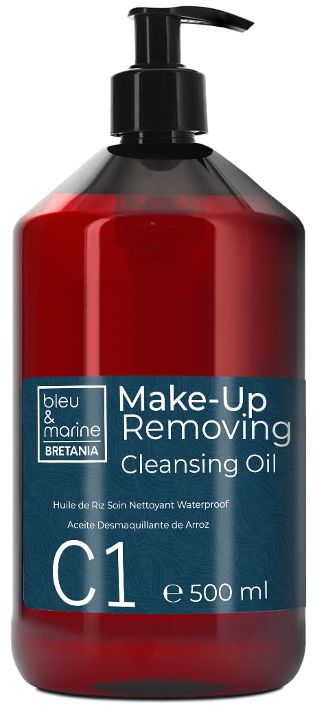 blue navy Bretania Antiaging facial cleansing and makeup remover oil Moisturizing makeup removal waterproof makeup removal and long lasting dry oily sensitive and combination skin 500 ml