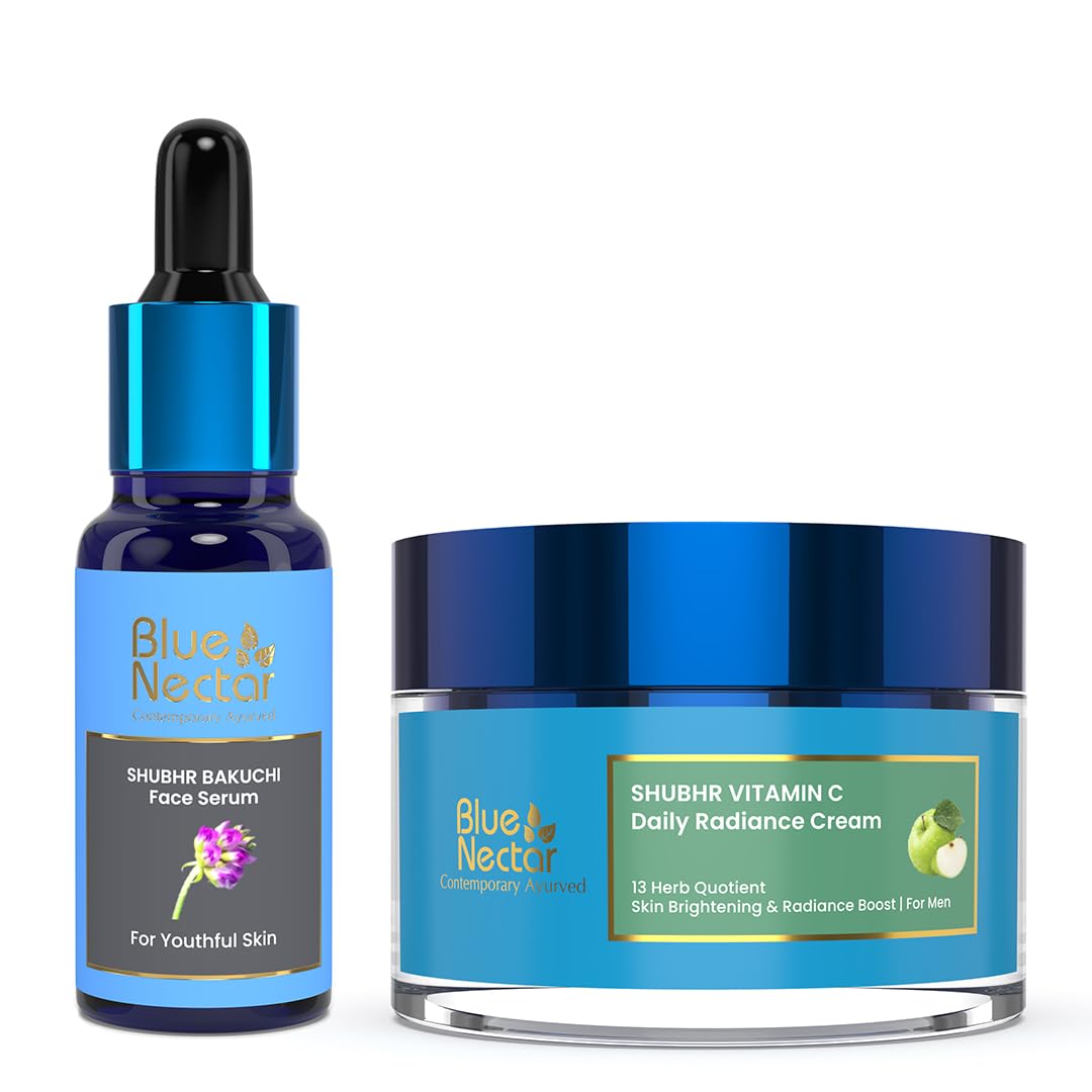 Elevate your skincare routine with our Blue Nectar Vitamin C Face Cream and Bakuchi Anti Aging Serum bundle. Achieve youthful, radiant skin with natural ingredients like Green Apple, Almond Oil, and Bakuchiol Serum. Say goodbye to dark spots, wrinkles, and dark circles!