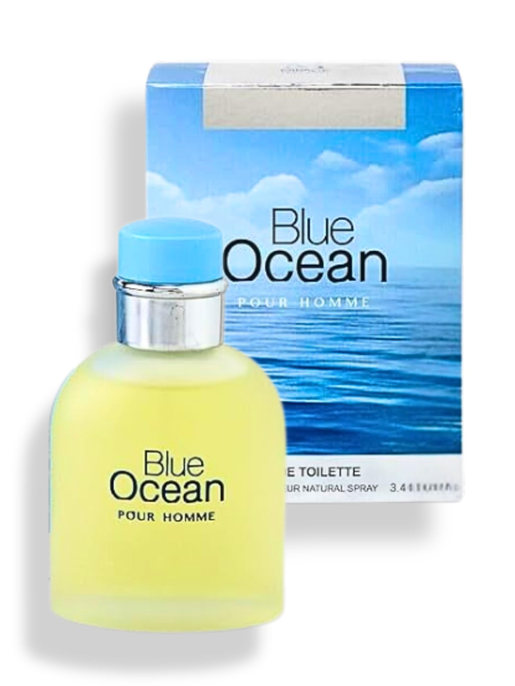 BLUE OCEAN POUR HOMME EAU DE TOILETTE is a Citrus Aromatic fragrance for men. Top notes are Grapefruit, Bergamot, Sicilian Mandarin and Juniper; middle notes are Pepper, Rosemary and Brazilian Rosewood; base notes are Musk, Incense and Oakmoss. BLUE OCEAN POUR HOMME EAU DE TOILETTE , designer cologne is an alternative fragrance and is in no way affiliated with the mentioned brand name. All product and company names are trademarks or registered trademarks of their respective holders. Use of them does not imply any affiliation with or endorsement by them. Fragrances are less expensive versions of the genuine/original brand owned by their rightful owners. Impression (version/inspired) fragrances are in no way connected with the trademark or trademark owners mentioned on the packaging. Whether you opt for the enduring elegance of perfume or the refreshing vivacity of cologne, these fragrant masterpieces are designed to accentuate your personality and make an unforgettable impression. Share your pleasure with someone else and treat that special person. It is the perfect gift for Mother's and Fathers Day, Valentine's Day, Christmas, a Birthday, Anniversary, Graduation, Business Gifts, any Holiday, or just as a gift to yourself. How to Use: - 1. Shake the perfume bottle gently before each use to ensure proper mixing of the fragrance. - 2. Remove the cap or spray nozzle and hold the bottle approximately 6-8 inches away from your skin. - 3. Spray the perfume onto your pulse points or apply a few drops using your fingertips. - 4. Allow the perfume to dry naturally without rubbing. - 5. For a longer-lasting scent, consider layering with scented body lotions or creams. - 6. Store the perfume in a cool, dry place away from direct sunlight and extreme temperatures.