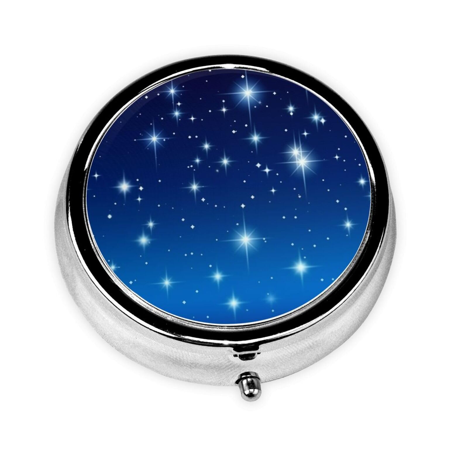 Wide range of applicable scenarios: suitable for use in various occasions such as home, office, and travel, providing you with convenient drug storage solutions. Multi-grid plastic inserts: The medicine box is designed with 3 plastic inserts inside, which can separate and store different types of pills, making them more organized and convenient to use. Convenient opening button design: The medicine box button design is easy to open, convenient and fast, and simple to operate, allowing you to easily access the medicine. Environmentally friendly metal material: Made of environmentally friendly metal iron plating material, it is durable, safe and reliable, and protects medicines from damage. Blue star pattern Portable mini design: round mini pill box, measuring 2.0x2.0x0.7 inches, lightweight and portable, suitable for carrying in pockets and purses, providing you with urgently needed medicines anytime and anywhere.