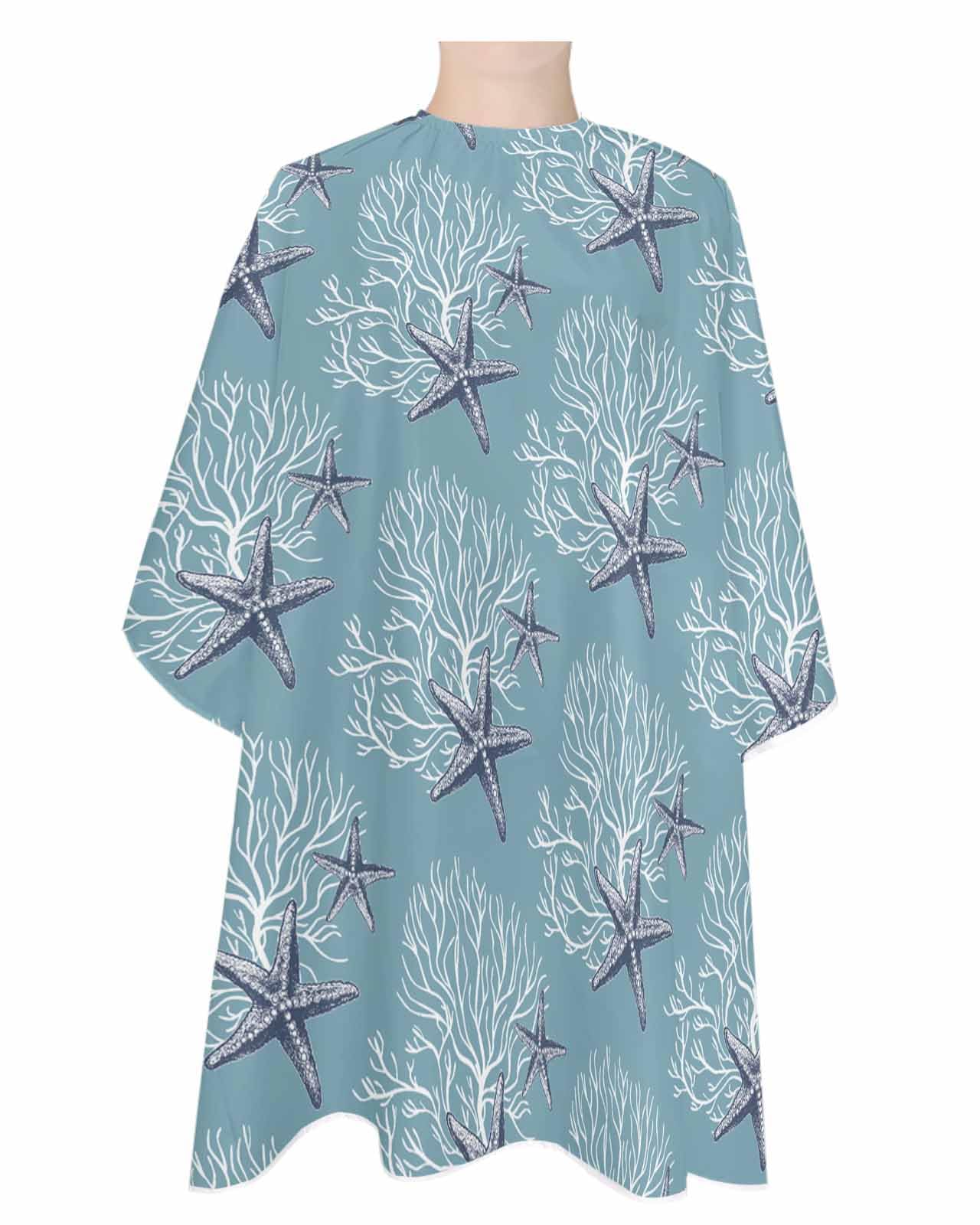 Blue Starfish Barber Cape - Salon Hair Cutting Cape for Women Men Kids Adults Coastal Coral Summer Beach Sea Nautical Haircut Cape with Adjustable Elastic Neckline Hairdressing Stylist Accessories 1 piece 55x63 Inch Blue
