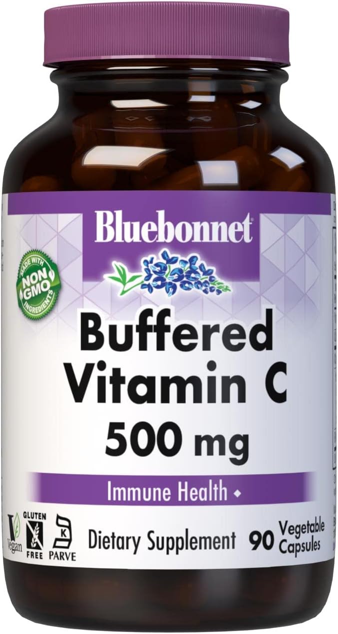 BlueBonnet Buffered Vitamin C 500 mg Vegetable Capsules, 90 Count, White (743715005686)