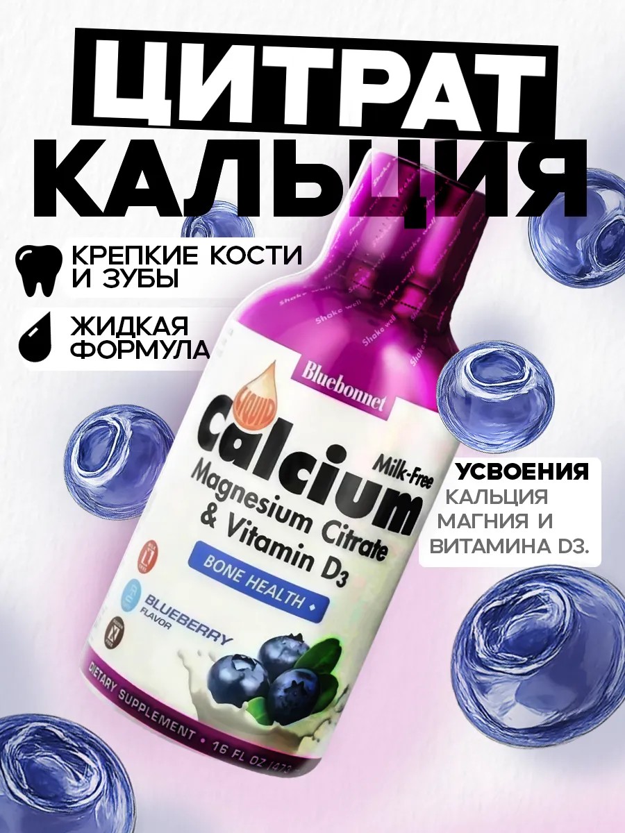 Bluebonnet Жидкий Цитрат Кальция и Магния с Витамином D3 – натуральная поддержка здоровья костей и не только