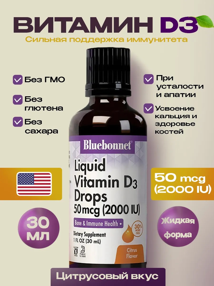 Bluebonnet Жидкий Витамин Д3 2000 IU — сила солнца в одной капле