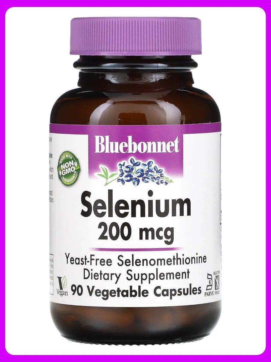 Селен от Bluebonnet Nutrition, бездрожжевой селенометионин, 200 мкг, предназначен для поддержки общего здоровья и обеспечения организма необходимым количеством селена. Селен является важным микроэлементом, который играет ключевую роль в антиоксидантной защите, поддержке иммунной системы, функционировании щитовидной железы, репродуктивном здоровье, снижении риска сердечно-сосудистых заболеваний и поддержании психического благополучия.
