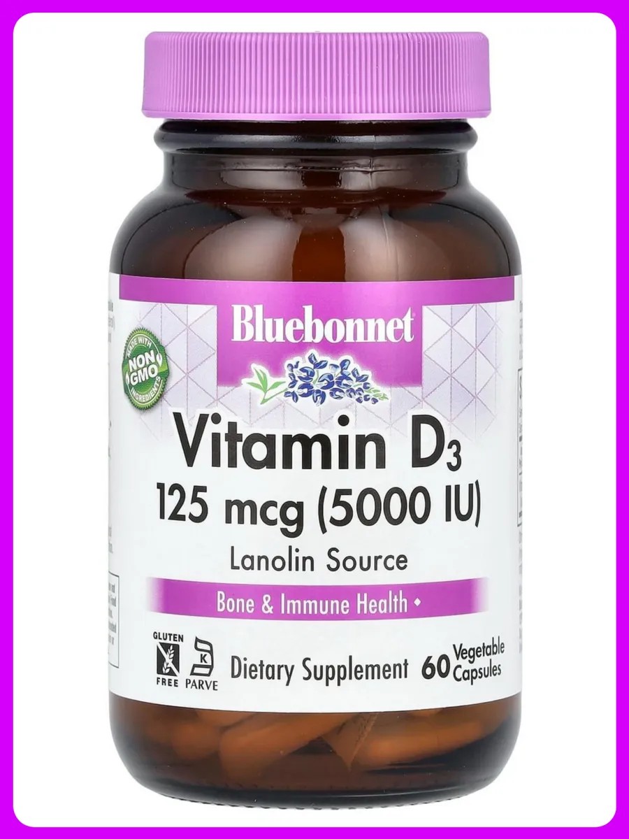 Bluebonnet Nutrition Витамин D3, 125 мкг (5000 МЕ), 60 капсул