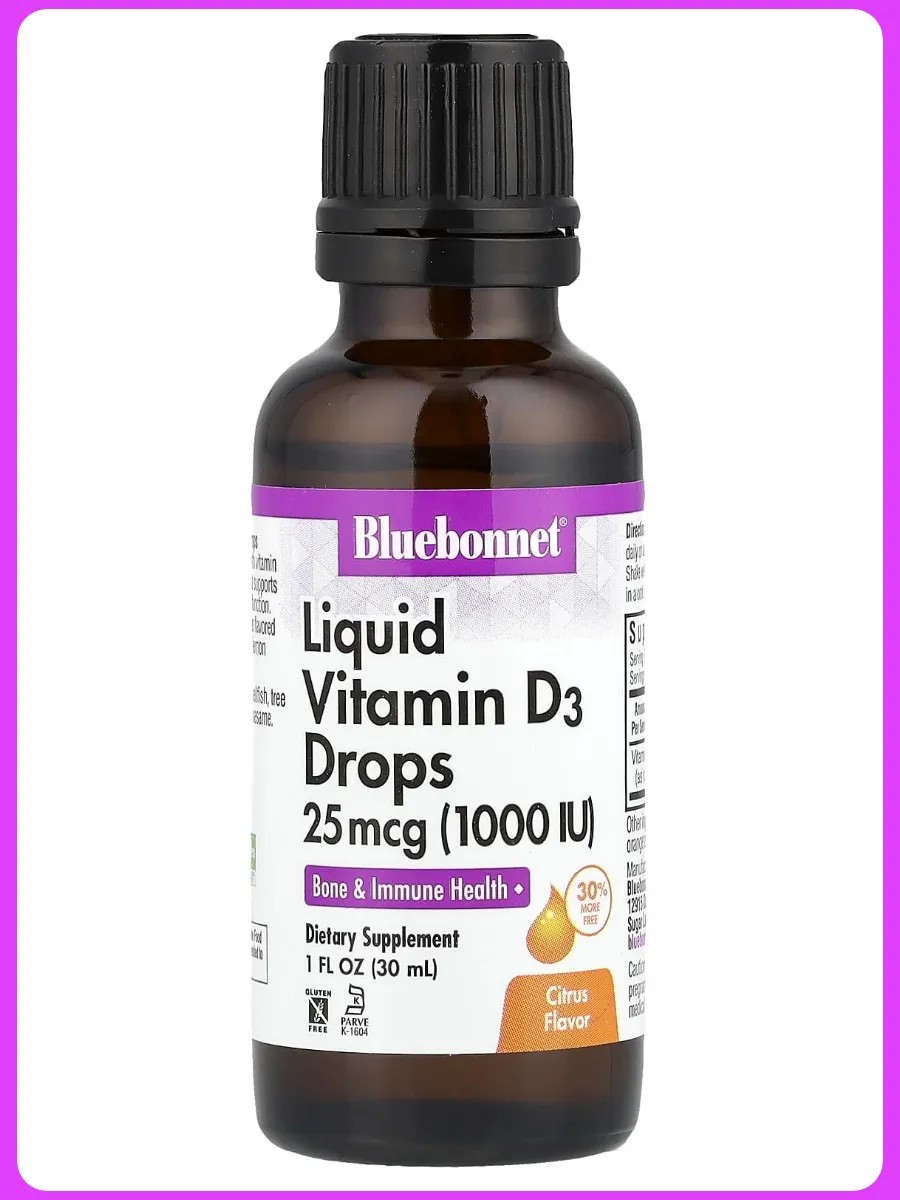 Жидкий витамин D3 в каплях от Bluebonnet в концентрации 1000 МЕ содержит натуральный витамин D3 (холекальциферол) получаемый из ланолина. Каждая капля этого «солнечного» витамина ароматизирована небольшим количеством эфирных масел апельсина и лимона. Поставляется в виде жидких капель для максимального усвоения и лучшего впитывания.