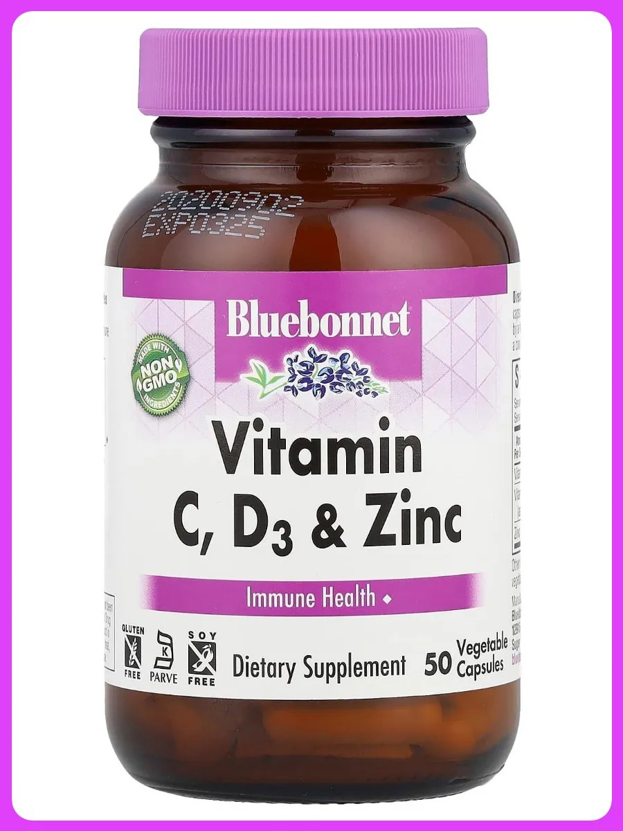 Растительные капсулы с витаминами C, D3 и цинком от Bluebonnet Nutrition разработаны с учетом потребностей организма в важных нутриентах, необходимых для поддержания здоровой иммунной системы.