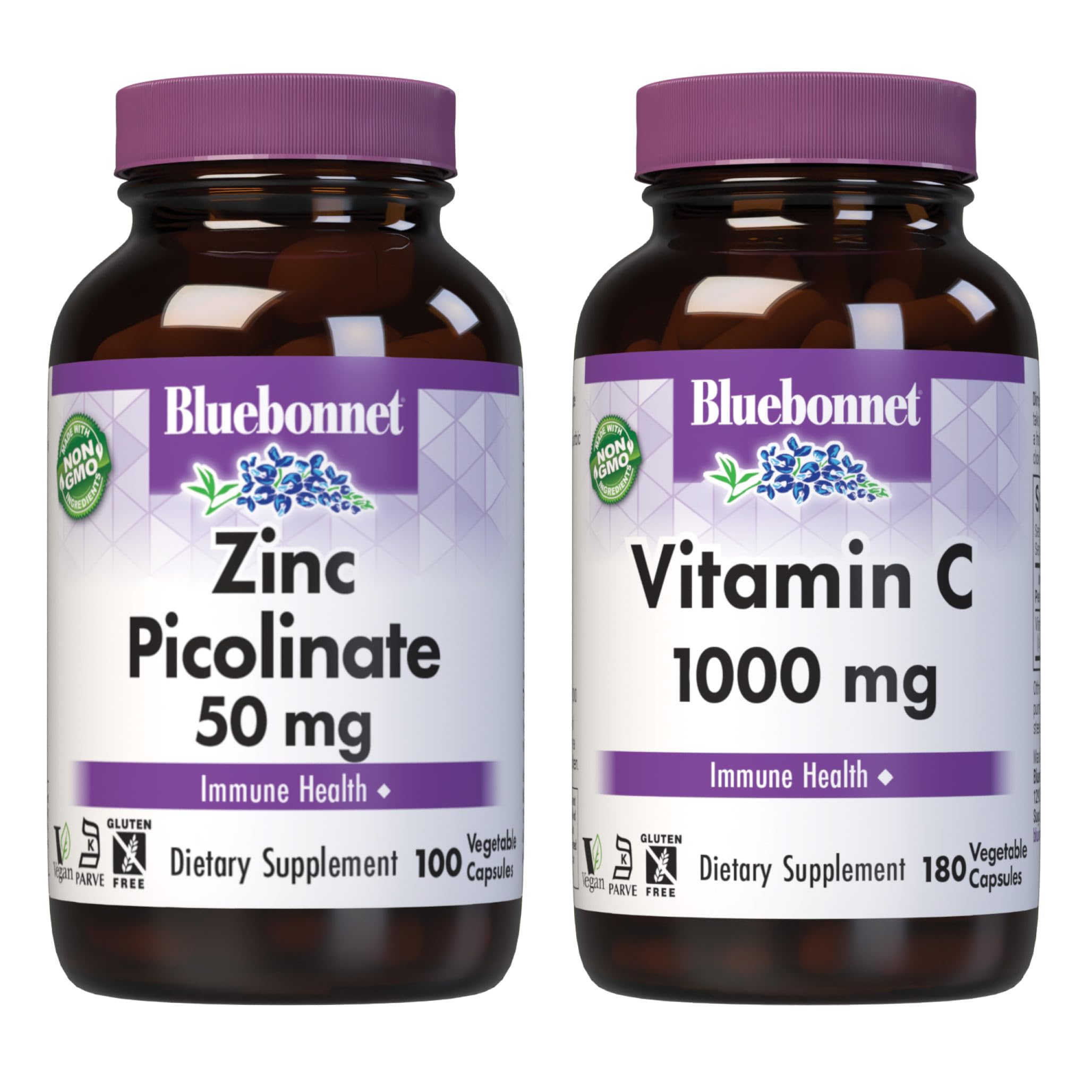 Bluebonnet's Zinc Picolinate 50 mg Capsules contain zinc in a chelate of picolinic acid. Zinc is an essential element that is necessary for immune health and enzyme function. Available in easy-to-swallow vegetable capsules for maximum assimilation and absorption. Bluebonnet Nutrition Vitamin C 1000 Mg Vegetable Capsules, Ascorbic Acid, for Immune Skin Health, Vegan, Vegetarian, Non GMO, Gluten, Soy Milk Free, Kosher, 180 Count.