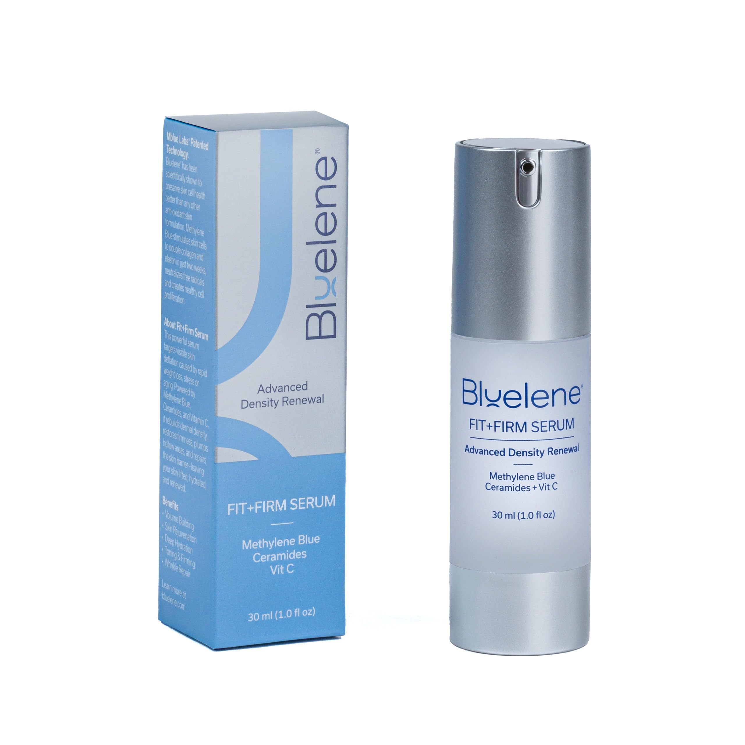 Bluelene Fit+Firm Serum Methylene Blue Vitamin C Ceramides Advanced Skin Density Renewal Serum Anti-Aging Restores Volume and Texture Smooths Wrinkles Hydrates.
