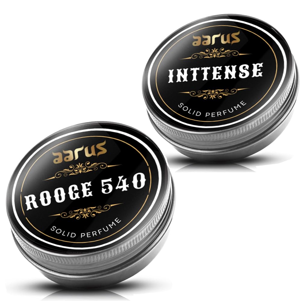 BlueQueen Solid Perfume with Cedar Wood Clary Sage Cologne Balm for Men And Women Cologne Balm Travel Cologne Wax India/Pack of 2 Rooge 540 And Inttense Solid Perfume
