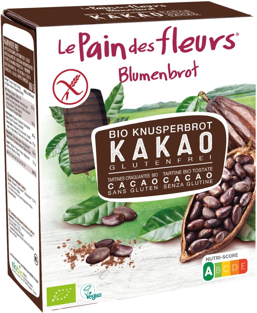 Finish: Flower bread inspired by buckwheat flowers. All 15 varieties are vegan, gluten-free, and the fig variety is also kosher. The Ekibio philosophy also means that the flower bread is made without yeast, eggs, fats, dairy products, or artificial flavorings. Therefore, Le Pain des Fleurs flower bread is not only suitable for people with gluten intolerance. The dough for the crispy bread is toasted for a few seconds at a high temperature of 300-400 C. This creates the special crispy texture, which also varies from one variety to another. Certification: German company Zöliakie e.V. AOECS Association of European Coeliac Societies The Vegan Society EU organic label. INGREDIENTS Rice flour, cane sugar, and cocoa powder 6.3 . From organic farming. From Fairtrade and organic farming. INSTRUCTIONS FOR USE Flower bread aims to transform your meals by shedding the stereotype of boring, dull bread. Flower bread offers a wide range of uses. Whether simply on its own for crisps, as a topping for soups, or combined with creative pasta dishes, the gourmet's imagination knows no bounds. This variety can be combined with just about anything in your refrigerator. See more