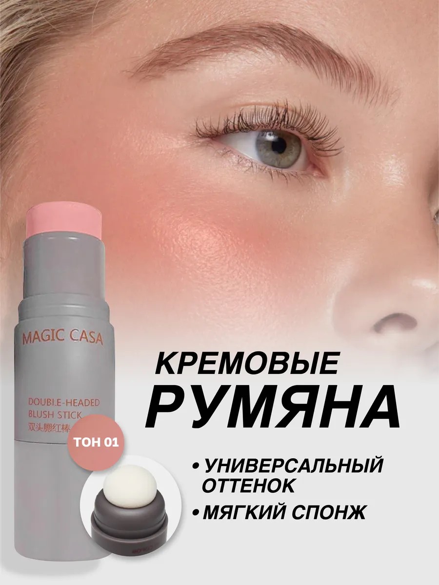 Кремовые румяна стик со спонжем– это популярный бьюти-продукт для быстрого и удобного макияжа, создают на лице естественный румянец, придавая образу нежности.