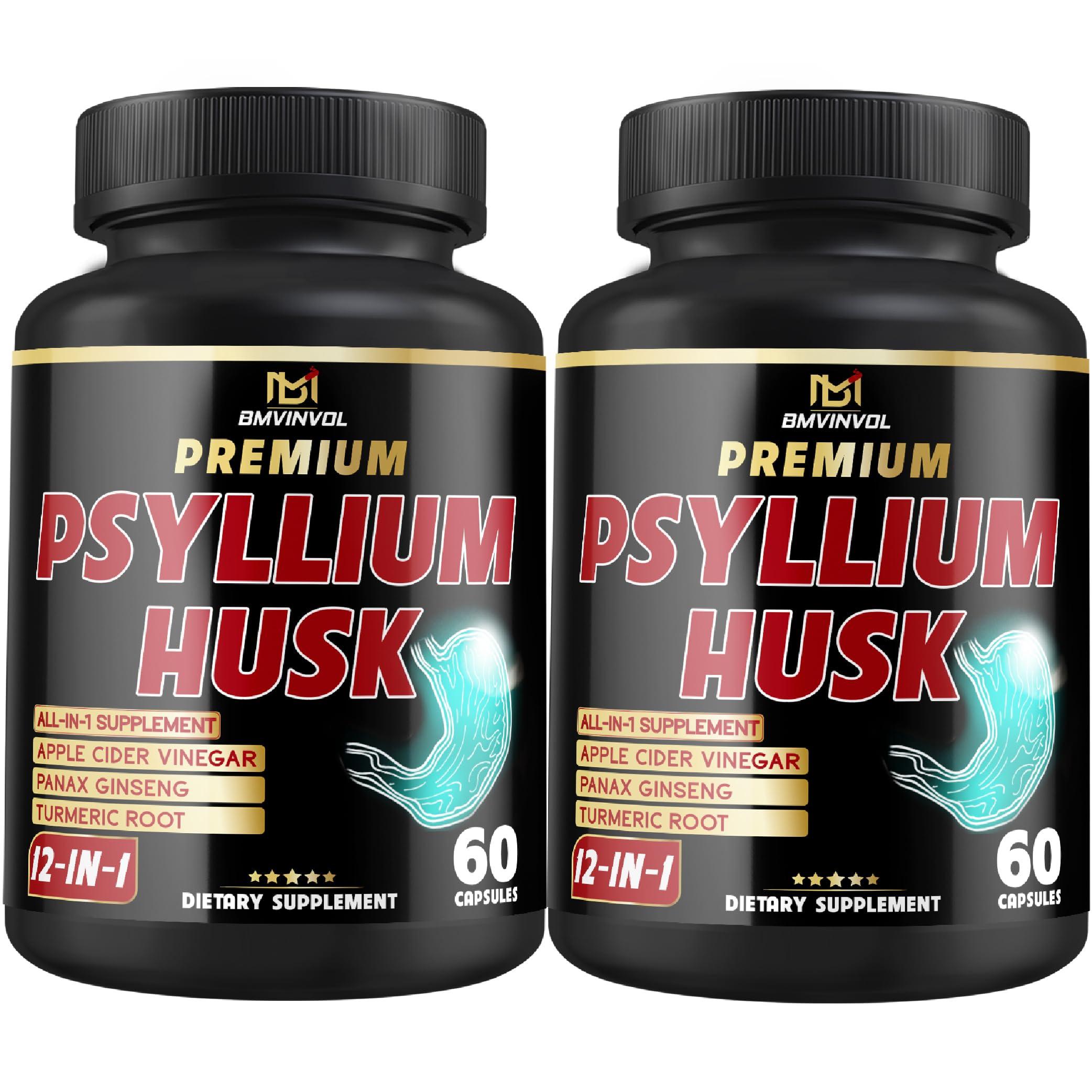BMVINVOL (2 Packs) Premium Psyllium Husk Capsules - 4 Months Supply - Ginger Fenugreek Turmeric - Psyllium Fiber Capsules for Supports Digestion & Regularity