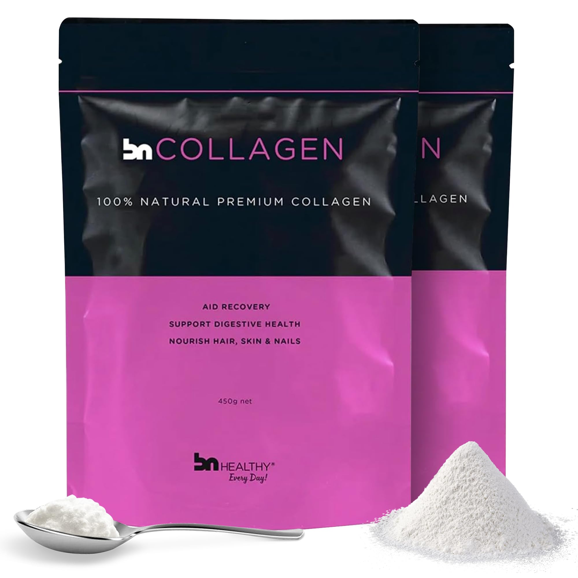 BNHealthy Collagen Peptides Powder 2-Pack for Hair Skin Nails and Joints - Premium Bovine Collagen - 100% Tasteless Formula with 13.5g Protein Per Serving 15.9 Ounce (Pack of 2)