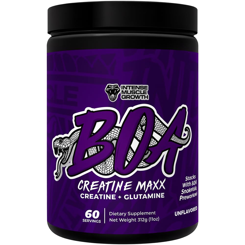 Whether you're looking to increase muscle mass, strength, or improve your endurance, BOA CREATINE MAXX - UNFLAVORED delivers the energy and recovery you need to push through your limits and unlock your full potential. Convenient and Easy to Use Comes in powder form, easily mixable with water or your favorite beverage, and can be incorporated seamlessly into your pre- or post-workout routine. No Artificial Additives Free from artificial colors, flavors, and sweeteners, BOA Creatine Maxx offers a clean and safe supplementation option. Pure Creatine Formula Made with high-quality BOA Creatine Maxx that's easily absorbed by the body, ensuring maximum effectiveness with every dose. Faster Recovery Reduces muscle fatigue and aids in quicker recovery after strenuous exercise, ensuring that you're ready for your next training session sooner. Improved Performance Supports higher endurance and faster recovery between sets, improving overall performance in activities such as weightlifting, sprinting, and intense workouts. Increased Muscle Mass Helps to promote muscle growth by enhancing the body's ability to store and utilize BOA Creatine Maxx, which is vital for muscle contraction and recovery. Enhanced Strength and Power BOA Creatine Maxx - Unflavored provides an immediate boost in strength and power output, supporting heavier lifts and more intense training sessions.