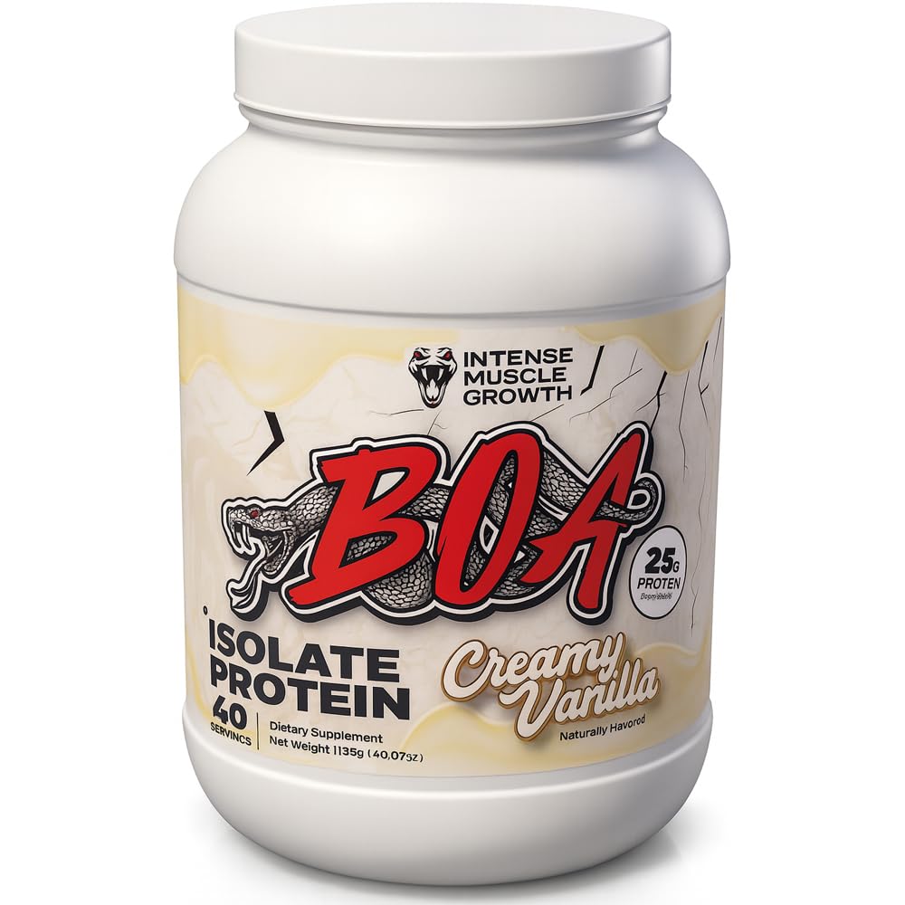 Smooth Texture - Our powder is designed to dissolve so you won't have to worry about any chunky or chalky textures while enjoying your favorite flavor. Daily Routine - Suggested to use, as a dietary supplement, mix 1 scoop with 8oz of water, milk, or milk substitute. For optimal results, consume within 20-30 minutes after training. Good-For-All - Whether it's before your workout, or after between breakfast and lunch, or with dinner BOA's Isolate Protein tastes best when-and-wherever you need it. Great Taste - Have your pick of power in four flavors: Treat your sweet tooth without all that extra sugar in our Chocolate Peanut Butter, Chocolate, Creamy Vanilla and Strawberry. Isolate Those Muscles - 25g of whey isolate per scoop to feed the beasts and keep them at bay before your next workout.