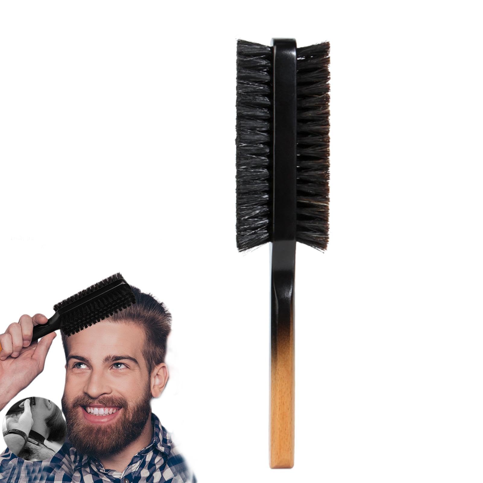 Boar Bristle Nylon Brush | Slick Hair Styling Double-Sided Mustache Brush With Wood Handle | Hairstyle Brush Beard Care For Home Travel Camping Business Trip Vacation