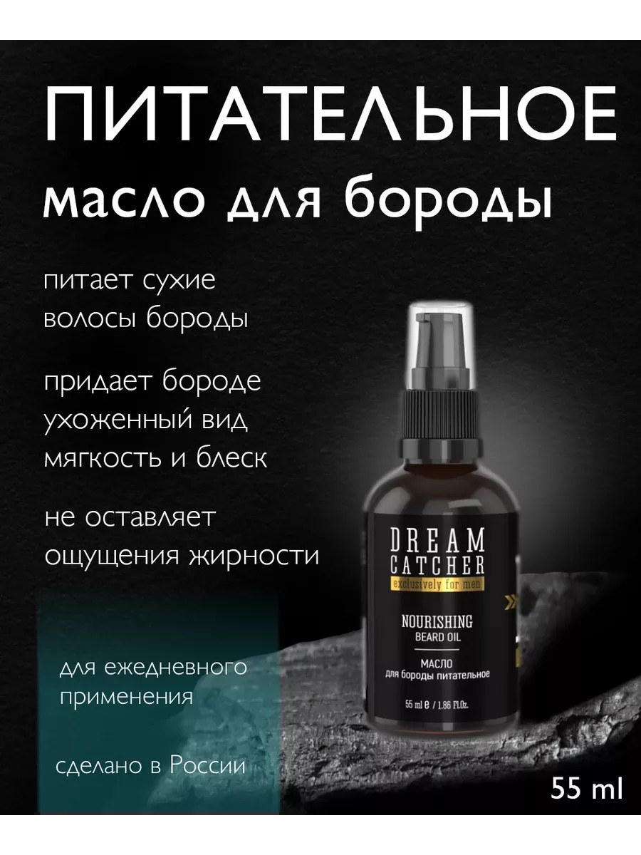 Питательное несмываемое масло Nourishing beard oil – уходовое средство DREAM CATCHER для красоты и здоровья вашей бороды! В основе профессиональной формулы натуральные масла жожоба и виноградной косточки, макадамии, семян сои и сладкого миндаля. Также в составе комплекс витаминов с Липосентолом М и аргановое масло. Ароматическая композиция с нотками шафрана, апельсина и кожи сделает применение масла еще более приятным. Это сделанная в России профессиональная косметика для мужчин, которая обеспечит питание волос и кожи лица. Несмывашка борется против секущихся кончиков и выпадения, обеспечивая восстановление и укрепление структуры волос. Она не оставляет эффекта жирного блеска, оказывая смягчающее и увлажняющее действие. Полезный бьюти - состав с органическими компонентами и парфюмерной композицией питает сухие, поврежденные и непослушные волосы бороды. Он обеспечивает гладкость и естественный блеск от корней до самых кончиков. Масло подходит для ухода за прямыми, кудрявыми и вьющимися волосами, разной густоты. Оно увлажняет и питает проблемную кожу лица, способствует росту здоровой и красивой бороды и усов. Состав поставляется во флаконе объемом 55 мл с удобным дозатором и крышкой. Он станет приятным подарком для любимого мужа и папы, брата или друга. Это универсальное средство для профессионального ухода за растительностью на лице в домашних условиях. Оно подойдет для отращивающих бороду взрослых и мужчин и молодого парня.