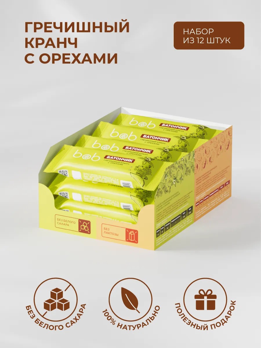 bob Шоколадные батончики Гречишный кранч без сахара 12 штук